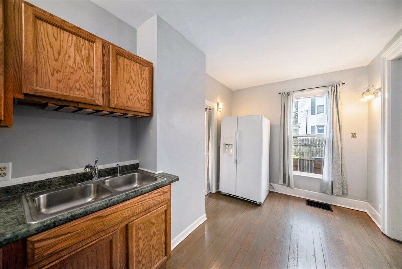 Property Id: 2216883 This charming 1800's two story duplex home features town house layouts with spacious rooms, vaulted ceilings, natural light and wood floors throughout. Friendly, quiet neighborhood is just a short walk from downtown, which offers a variety of dining, shopping and other activities. The home is close to schools, parks, walking and biking trails. The eat-in kitchen includes microwave, gas range, and full-size refrigerator. Central gas heating, air conditioning, and spray foam insulation keep rooms comfortable and utilities low. First floor laundry room includes washer and dryer. The wood floors and large trim, show off the style of a vintage home with a modern color pallet. Basement includes storage and a work area. The semi-private backyard has a concrete patio, perfect for grilling. No outdoor maintenance is required. Security deposit equals one and a half months rent. Previous rental references and personal references are required. No smoking, vaping, incense or pets.
