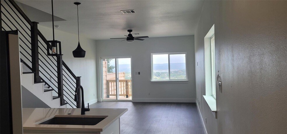 Enjoy Hill Country & Lake Living in this charming Duplex unit with stunning lake and hill country views. Wake up to gorgeous sunrises and relax in the evening watching a burst of colors as the sun sets. The duplex unit has 3 bedrooms and 2.5 baths with all bedrooms upstairs. Open floor plan below with the kitchen looking into the dining and family room. Spacious rooms with ceiling rooms. The master bedroom is set in the back upstairs to make the most of the views. Luxurious en-suite bathroom with walk-in shower and a large walk-in closet. 2 car garage with extra space for storage. You also get access to the various amenities, parks and recreation and marina docks available through LVPOA. Apply today to make this your new abode.