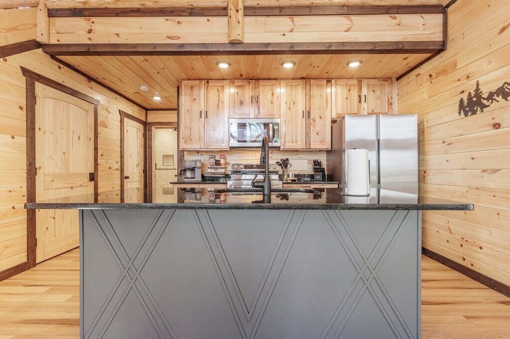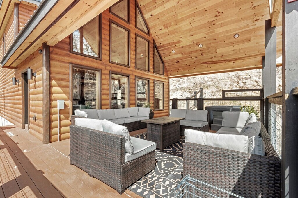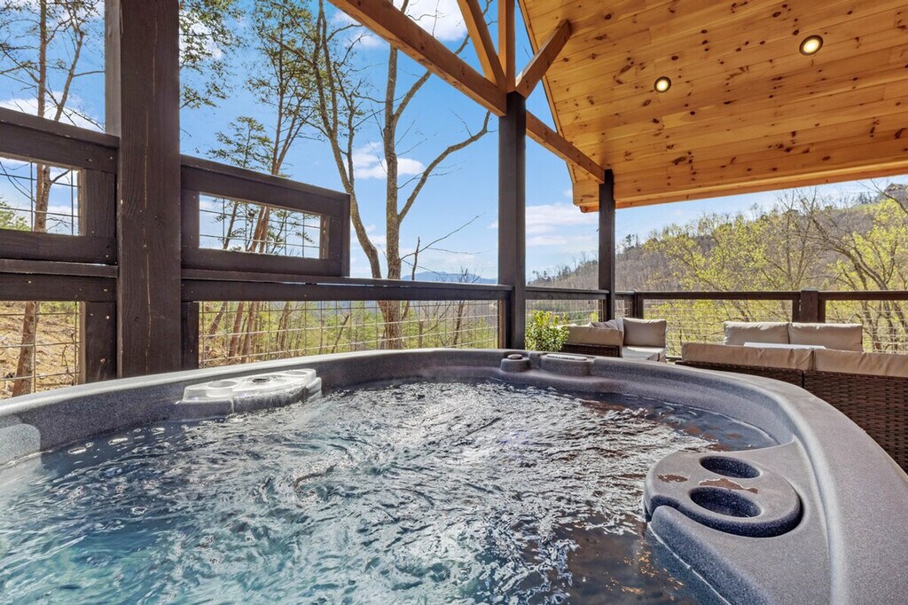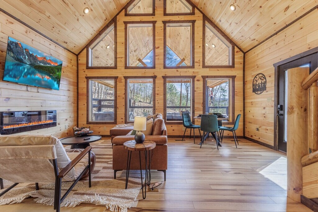 The advertised rate of $6,910/month is the lowest available price, based on a 1 month(s) stay with a move-in date of April 30, 2026. Rates vary depending on the duration of stay, season, and other parameters. For exact pricing and additional pricing components, please visit our website and enter your desired move-in and move-out dates. The rate is applicable when billed upfront; it can be higher if billed in multiple payments. Escape to this calm, stylish Smoky Mountains retreat for up to 6 guests and feel at home. This modern cabin offers a full wall of windows showcasing mountain views, making it the perfect place to unwind and reconnect with nature. Enjoy a seamless self check-in and complete privacy in this thoughtfully designed space. This modern cabin features a warm design that blends natural wood textures with clean, intentional details. The open living area features a vaulted ceiling and a full wall of windows that brings the outdoors in, filling the space with natural light and creating a calm, inviting atmosphere. The living room is designed for comfort with a fireplace, blankets, games, and a stargazing set-up. The fully equipped kitchen is ready for real meals and includes a full set of cookware, utensils, and small appliances like a blender. Relax on the covered deck with a lounge area and a private hot tub or gather around the firepit for a quiet night under the stars. For your safety and peace of mind, exterior security cameras are installed on the property to monitor outdoor areas only, such as the driveway and entrances. There are no cameras or recording devices inside the home. The property is on a natural well water system with filtration, which is common in mountain homes. The water is tested and is safe for drinking, cooking, and all other uses. Includes a dedicated workspace for your convenience. [SI]