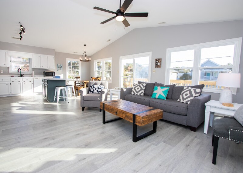 Property Id: 1643330 Available for monthly rental through middle of May. Enjoy this newly renovated coastal beach cottage in Emerald Isle. This dog and family friendly cottage has three bedrooms and two full baths for plenty of room for 8 people. The open living room, dining room and kitchen gives everyone lots of space to spread out and play games, watch TV or just visit. The large deck gives you a place to enjoy the morning sunrise or evening breeze while reading a book. Relax and enjoy the private beach access only two blocks from the home. Centrally located in Emerald Isle, you are able to walk to several popular restaurants and coffee shops. This property only allows one dog under 35 lbs. In consideration of future guests, please make sure they stay off the furniture and the beds. Pet fee of $150 per month. Call for more information. Background check and credit information will be checked.