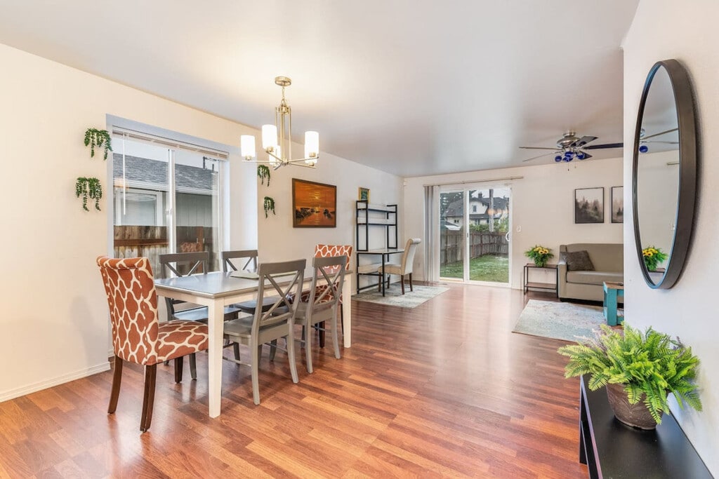 Discover a tranquil haven in this fully furnished private home nestled in Tacoma, Washington. Feel at home with close proximity to key locations, including major highways, medical centers, UW-Tacoma, the Convention Center, Tacoma Dome, the Museum of Glass, JBLM, and more. Enjoy restful nights on cozy queen-size beds complete with plush linens and benefit from the convenience of an in-home washer and dryer. Indulge in the convenience of a fully equipped kitchen stocked with plates, glassware, silverware, pots, pans, and more. Stay entertained with a Smart TV and seamless work-from-home with fast Wi-Fi, ensuring uninterrupted productivity. Complimentary amenities such as coffee, tea, paper towels, laundry and dishwasher pods, toilet paper, bath towels, soap, shampoo, and conditioner are provided as starter packs. Pet enthusiasts rejoice as this home is pet-friendly with a fee of $25 per night for stays up to 10 days or a $250 flat rate for stays exceeding 10 days per pet, with a maximum of 2 pets. Secure and convenient parking is available in the attached garage. Downtown Tacoma is the central business and cultural district of the city, known for its historic architecture, vibrant arts scene, and stunning waterfront. The area features a mix of modern buildings and older structures, including the University of Washington Tacoma campus, museums, theaters, galleries, and a variety of shops, restaurants, and cafes. The Museum District houses renowned attractions like the Tacoma Art Museum, Museum of Glass, and Washington State History Museum. The Foss Waterway adds to the charm, offering waterfront promenades, parks, and boat tours. Overall, downtown Tacoma is a hub of activity with a unique blend of history and modernity. Getting around is a breeze with convenient transportation options like Uber and Lyft, making it easy to explore the city and local attractions. Air conditioning is available. Check-in is at 4 PM and check-out is at 11 AM, with early check-in and late check-out available upon request for a $25 per hour fee. Trash and recycling collection occurs every other Tuesday, and a $50 fee will be applied for missed pickups. To ensure a smooth departure, please leave key fobs, parking remotes, and mail keys where found at check-in, with a $100 charge for any lost items. Remote check-in is offered for a seamless arrival experience, with easy instructions provided prior to your stay. Seamless work-from-home experience is ensured with fast Wi-Fi for uninterrupted productivity. A laptop computer is not included.