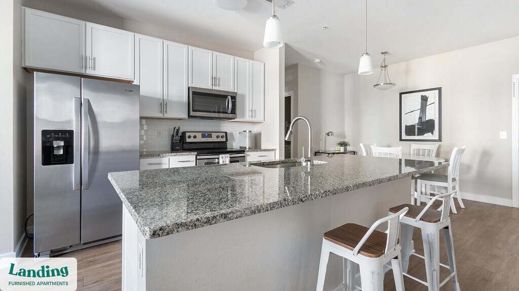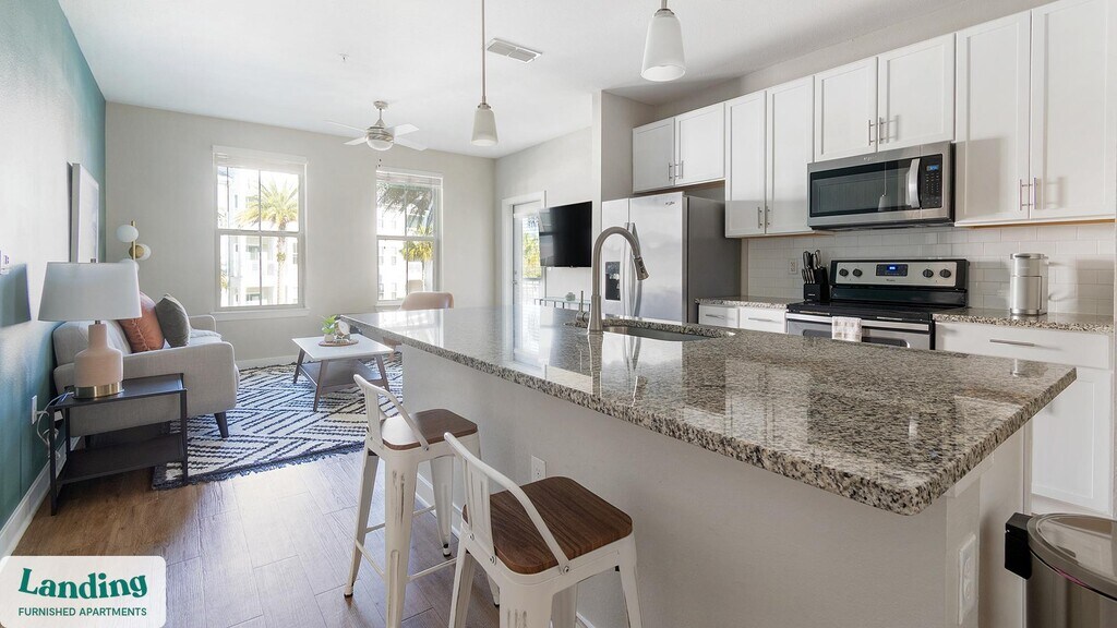 Landing is a top-rated, fully furnished apartment network with thousands of homes across 250+ U.S. cities. With premium amenities, a mobile app to manage your stay, and 24/7 support. Our apartments have everything you need for monthly and longer stays.: 6-Month Minimum base rent: starts at $2223/mo 12-Month Minimum base rent: starts at $2032/mo Landing's apartments at Reserve at Nocatee are designed for comfortable, easy living, with the ability to stay as long as you like. All Landing apartments include: - Fast Wi-Fi - Stylish furnishings - Fully-stocked bathroom - Smart TVs - Comfortable bed - Professionally cleaned - Guest support Stay longer for cheaper! The longer you stay, the bigger your discount. Price advertised is for a 12-month stay, including all utilities and fees, and may vary based on availability. We manage multiple units at this property. While all feature a similar style and furnishings, the layout and specific design elements may vary slightly from the photos provided. Some of the nitty-gritty: a background check and proof of income are required; we're completely smoke-free; pet-friendly options are available; parking is subject to availability.