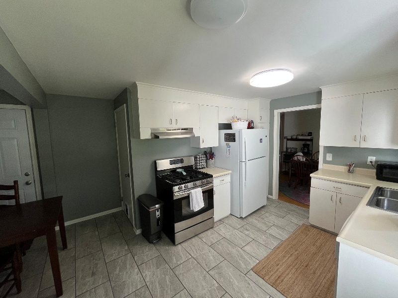 Property Id: 2316172 This freshly remodeled ranch is located on the corner of a quiet, culdesac neighborhood. There’s an attached garage and plenty of storage space in closets and the basement. Everything is furnished and included so you won’t have to worry about bringing anything but yourself!