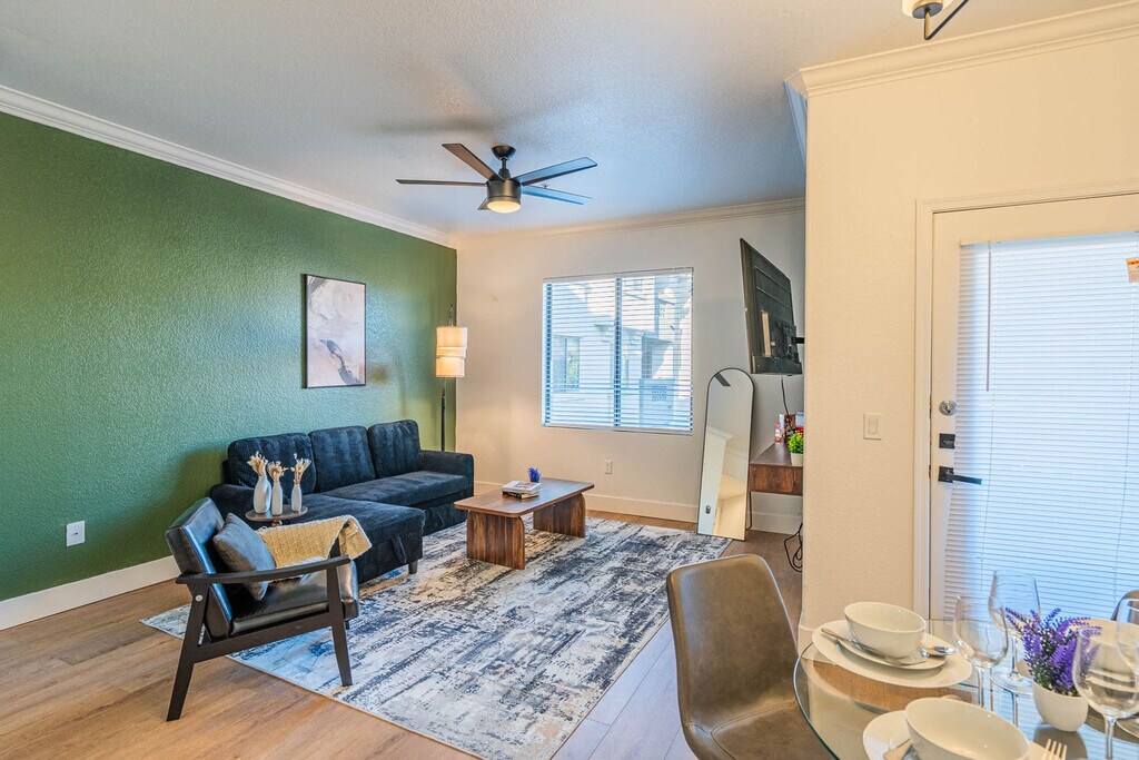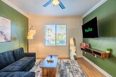 Enjoy a relaxing getaway and feel at home in this modern 2-bedroom, 2-bathroom apartment in the heart of Tempe. Located just minutes from the airport and Arizona State University, this centrally located apartment is perfect for couples, small families, or fans visiting for Spring Training at Diablo Stadium. Experience elevated comfort in this roomy apartment. The living room is ideal for relaxing and enjoying the company of friends and family while watching a movie on the 4K 55" HDR smart TV. The fully equipped kitchen features a microwave, stove, oven, dishwasher, refrigerator/freezer, coffee maker with coffee essentials, an electric kettle, full cookware, silverware, and glasses. The apartment also features a dining table with chairs. The inviting full bathrooms are stocked with essential toiletries, plush towels, hand towels, and washcloths. Parking is available on the premises, and instructions will be given at check-in. Pets are welcome with a fee of $20 per night. There is a 2 pet maximum and only cats/dogs are allowed. This apartment is perfectly positioned in the heart of the East Valley, just minutes from Diablo Stadium and Arizona State University. You’re also surrounded by shopping at Arizona Mills, hiking at South Mountain, and the nightlife of Downtown Tempe. Nearby attractions include Phoenix Sky Harbor International Airport (4.6 miles), Tempe Diablo Stadium (2.1 miles), Arizona State University Tempe Campus (3.1 miles), and Downtown Tempe/Mill Avenue (3.8 miles). You'll also find award-winning restaurants and bars a short drive away, such as Culinary Dropout (3.5 miles), Rustler's Rooste (2.2 miles), Postino South Tempe (4.1 miles), and The Shop Beer Co. (3.9 miles). Nearby markets and shopping include Arizona Mills Mall (1.0 mile), Fry's Food and Drug (1.8 miles), Whole Foods Market (3.4 miles), and IKEA Tempe (6 miles). Quiet hours are between 10 pm and 8 am every day. If there are noise complaints or any violation of this rule, it may result in cancellation of booking and removal from property without refund. There is a strict no-party policy. If there is a party of any kind the police will be called and everyone will be removed from the property with no refunds. No unauthorized guests are allowed at the unit, and there is a $100 fine per guest if discovered. Smoking is prohibited without exception on this property. If any signs of smoking are found in the unit or on the premises, a fine of $500 will be imposed. If you are found to have brought pets without prior notification, there will be a $500 fee. If the property is left in a state that necessitates additional cleaning, you may be charged extra for cleaning. Lost or unreturned keys will incur a $500 fee. For delayed checkout, there will be a $500 late checkout fee. If tampered with, there will be a fee for the noise monitors installed in the unit. Includes an office desk and chair, perfect for remote work or students. [SI]