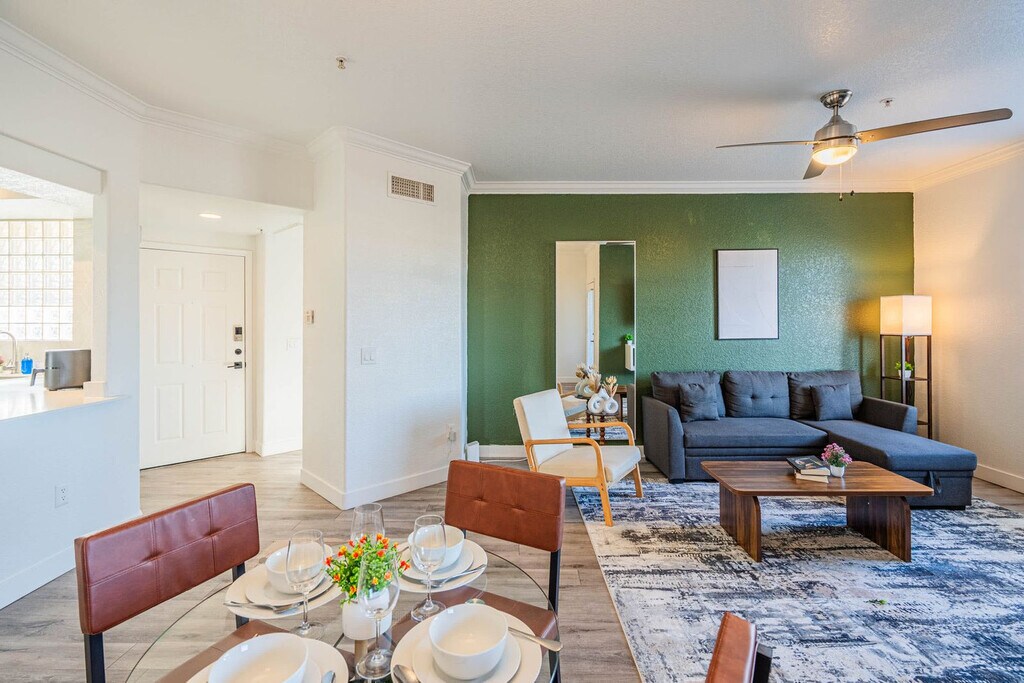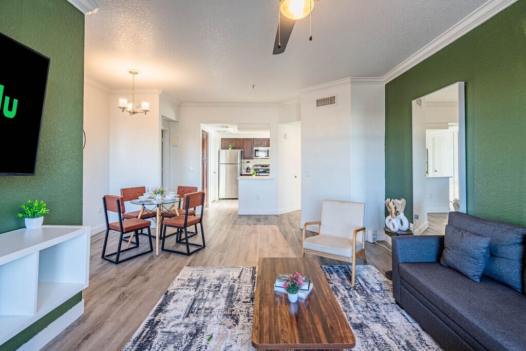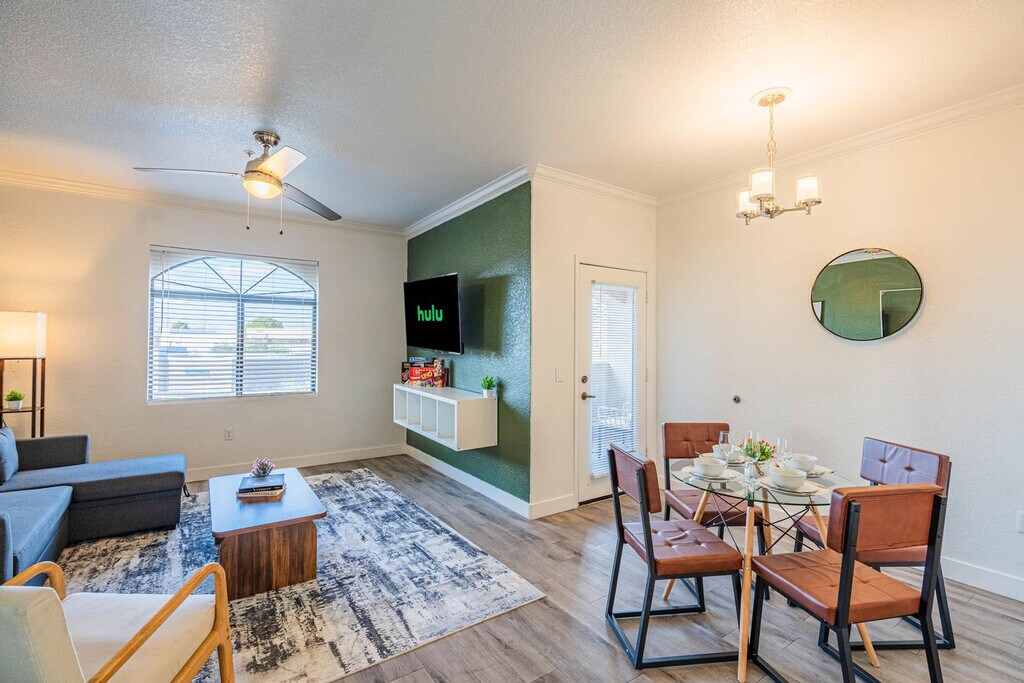 The advertised rate of $1,814/month is the lowest available price, based on a 30 day(s) stay with a move-in date of May 30, 2026. Rates vary depending on the duration of stay, season, and other parameters. For exact pricing and additional pricing components, please visit our website and enter your desired move-in and move-out dates. The rate is applicable when billed upfront; it can be higher if billed in multiple payments. Feel at home in this bright and modern 2-bedroom, 2-bath apartment in Tempe’s vibrant hub. This stylish, family-friendly unit is just minutes from ASU, Diablo Stadium, and Downtown Tempe. This spacious apartment is designed for comfort, convenience, and style. The fully equipped kitchen features a microwave, stove, oven, refrigerator/freezer, dishwasher, coffee maker with essentials, electric kettle, glassware, silverware, and pots and pans. The cozy living space includes a sofa bed, armchair, a 4K 55" HDR smart TV, and a coffee table. Pets are allowed depending on size or if they are service animals with a fee of $20 per night. There is a 2 pet maximum and only cats and dogs are allowed. Depending on our cleaning schedule, we may be able to accommodate early check-in and check-out at a fee of $25 per hour, and you must message us 24 hours beforehand to see if we can authorize this request. Perfectly positioned in the heart of the East Valley, this prime spot is a sports fan’s dream, located just minutes from Diablo Stadium for Spring Training and the vibrant energy of Arizona State University (ASU). You’re also surrounded by top-tier shopping at Arizona Mills, scenic hiking at South Mountain, and the bustling nightlife of Downtown Tempe. Phoenix Sky Harbor International Airport (PHX) is 4.6 miles away, Tempe Diablo Stadium (Angels Spring Training) is 2.1 miles away, Arizona State University (ASU) Tempe Campus is 3.1 miles away, and Downtown Tempe / Mill Avenue is 3.8 miles away. Quiet hours are between 10pm and 8am every day. If there are noise complaints or any violation of this rule, it may result in cancellation of booking and removal from property without refund. There is a strict no-party policy, and if there is a party of any kind the police will be called and everyone will be removed from the property with no refunds. No unauthorized guests are allowed at the unit, and there is a $100 fine per guest if discovered. Smoking is prohibited without exception on this property, and if any signs of smoking are found in the unit or on the premises, a fine of $500 will be imposed. If you are found to have brought pets without prior notification, there will be a $500 fee. For delayed checkout, there will be a $500 late check-out fee. Lost or unreturned keys will incur a $500 fee. If the property is left in a state that necessitates additional cleaning, you may be charged extra for cleaning. There are noise monitors installed in our units that measure the noise levels in decibels, and if tampered with, there will be a fee. [SI]