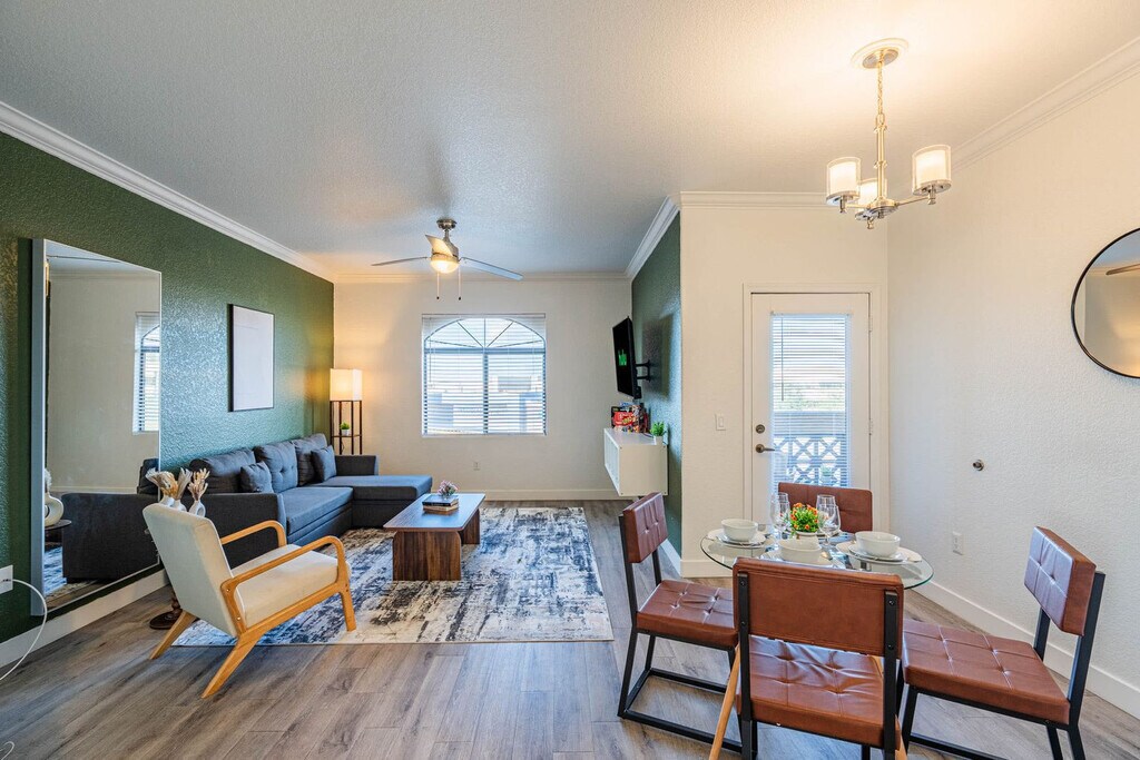 The advertised rate of $1,732/month is the lowest available price, based on a 1 month(s) stay with a move-in date of June 1, 2026. Rates vary depending on the duration of stay, season, and other parameters. For exact pricing and additional pricing components, please visit our website and enter your desired move-in and move-out dates. The rate is applicable when billed upfront; it can be higher if billed in multiple payments. Feel at home in this spacious 2-bedroom/2-bath apartment in the heart of Tempe, just minutes from ASU, Diablo Stadium, and Downtown Tempe. This modern, family-friendly unit features a fully equipped kitchen and a cozy living room with a 4K TV. The kitchen includes a microwave, stove, oven, refrigerator/freezer, dishwasher, coffee maker with essentials, electric kettle, glassware, silverware, pots, and pans. The stylish living area is furnished with a sofa bed, armchair, and coffee table. The unit includes two full bathrooms, fully stocked with essential toiletries. Pets are allowed depending on size or if they are service animals for a fee of $20 per night, with a maximum of 2 pets. Only cats and dogs are allowed. Early check-in/check-out may be accommodated at a fee of $35 for 2 hours, and you must message 24 hours beforehand to see if this request can be authorized. This apartment is perfectly positioned in the heart of the East Valley, just minutes from Diablo Stadium and Arizona State University (ASU). You’re also surrounded by top-tier shopping at Arizona Mills and the bustling nightlife of Downtown Tempe. Phoenix Sky Harbor International Airport (PHX) is 4.6 miles away, Tempe Diablo Stadium is 2.1 miles away, Arizona State University (ASU) Tempe Campus is 3.1 miles away, and Downtown Tempe / Mill Avenue is 3.8 miles away. Culinary Dropout is 3.5 miles away, Rustler's Rooste is 2.2 miles away, Postino South Tempe is 4.1 miles away, and The Shop Beer Co. is 3.9 miles away. Arizona Mills Mall is 1.0 mile away, Fry's Food and Drug is 1.8 miles away, Whole Foods Market is 3.4 miles away, and IKEA Tempe is 6 miles away. Quiet hours are between 10pm and 8am every day. If there are noise complaints or any violation of this rule, it may result in cancellation of booking and removal from property without refund. There is a strict no-party policy. If there is a party of any kind the police will be called and everyone will be removed from the property with no refunds. No unauthorized guests are allowed at the unit, and there is a $100 fine per guest if discovered. Smoking is prohibited without exception on this property. If any signs of smoking are found in the unit or on the premises, a fine of $500 will be imposed. If you are found to have brought pets without prior notification, there will be a $500 fee. If the noise monitors are tampered with, there will be a fee. You may be charged extra for cleaning if the property is left in a state that necessitates additional cleaning. Lost or unreturned keys will incur a fee of $500. For delayed checkout, there will be a $500 late check out fee. If you bring a pet(s) without letting us know beforehand for the fees, there will be a fine of $500 if discovered. Registration Number: 21533671 [SI]