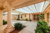Property Id: 2268589 Well maintained, clean house on an oversized CUL-DE-SAC lot! Remodeled kitchen boasting GRANITE countertops & TRAVERTINE backsplash! Spacious primary bedroom and bathroom with HUGE WALK-IN CLOSET and dual sinks. Vaulted ceilings, PLANTATION SHUTTERS, and built in office nook. Wonderful, cozy shaded courtyard. Insulated garage door, garage cabinets with workbench, painted garage floors, and water softener. Comes with a fridge, washer, dryer, plus the laundry room has a utility sink. Security screen doors & sunscreens. A/C replaced 3 years ago. Great amenities, great, quiet location. Directions: DO NOT USE GPS!!!! From Grand Avenue, East On R.H. Johnson, North (Left) On 151 St Ave., Continue North On 151 St Avenue, Then Go East (Right) On White Horse Dr., Then It Will Be Your Second Cul-De-Sac On Your Left On 149 Th Dr.