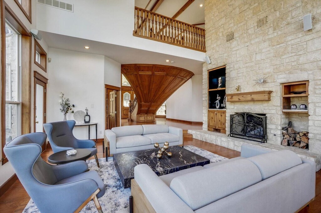 Escape to this one-of-a-kind mansion on 22 scenic acres with ponds, trees, and a peaceful creek, just 15 miles from downtown Dallas. With over 6,200 sq ft of stunning design, this luxury retreat is perfect for families, groups, or special getaways. Feel at home in this expansive property featuring 6 spacious bedrooms, 6 modern bathrooms, a fully equipped kitchen, a private pool, and expansive outdoor grounds. The mansion also includes an office, game room, and wet bar, providing ample space for relaxation and entertainment. This home caters to both short-term and medium-term stays, making it an excellent choice for corporate housing needs. Whether you find yourself temporarily displaced from your home or require accommodations for your team during an extended project in the area, this property provides a welcoming and comfortable "home away from home" experience. The gourmet kitchen is fully stocked with premium stainless-steel appliances, dual islands, and a breakfast bar, perfect for preparing meals or gathering with friends and family. Relax beneath soaring ceilings and sun-filled windows, cozy up by the stone fireplace, or enjoy a cocktail at the wet bar. The open layout is designed for connection and entertaining. Share a meal at the elegant dining table, grab a quick bite at the breakfast bar, or enjoy casual drinks around the wet bar. With 6 spacious bedrooms, there’s room for everyone. From the king suite to cozy queen rooms, sofa beds, and a fun bunk room, the home sleeps up to 19 guests comfortably. Six spa-like bathrooms offer walk-in glass showers and deep soaking tubs, complete with fresh towels and toiletries to make your stay effortless. Step outside to your private pool, shaded patio, and hammock overlooking 22 acres of ponds, trees, and a winding creek. Guests may rent the event center, if available, for parties and large gatherings. The venue is completely separate, with its own entrance and parking, and is located on the far side of the pond. Our nightly rate includes the first six guests, with each additional guest incurring a $29/night fee. Parking is available in the 3-car garage or spacious driveway. Please note that spa jets and heater are not in use. Welcome to Garland, Texas, a vibrant cultural hub in North Texas! This diverse city blends rich history, urban charm, natural beauty, and authentic Texas spirit. Whether you’re here for shopping, the arts, outdoor adventures, or lively community events, Garland has something for everyone. Plus, Dallas is just minutes away. Local highlights include the Surf & Swim Recreation Center, a fun water park with a wave pool for surfing and bodyboarding, and Firewheel Town Center, an open-air shopping area with over 100 stores, dining, and entertainment. Nearby Dallas attractions include the Dallas Arboretum & Botanical Garden, offering 70 acres of breathtaking gardens on White Rock Lake, and Galleria Dallas, a premier shopping and dining destination featuring luxury retailers and an ice-skating rink. Smoking of any type is not allowed, and violations are subject to a $450 fine plus the cost to clean, deodorize, and repair damages. Check-in is at 4pm and checkout is at 10am. No parties or events are allowed, and only registered guests will be permitted on the property. Pets should be discussed in advance; only house-trained pets are allowed, and pet cleaning fees will be applied. The property includes a noise alert device to monitor decibel levels and ensure compliance with local noise ordinances and occupancy regulations. The device does not record or store sound data. The fireplaces in the living room and kitchen are wood-burning but not provided with wood, and guests are asked to refrain from using them without prior approval. The fireplaces in the master bedroom and master bathroom are inoperable. No street parking is allowed due to city regulations. The property may not be occupied by more than three persons who are unrelated by blood, adoption, or marriage, with the exception of children related to an occupant. Stay productive in the office with its cozy fireplace, and take advantage of the full laundry room for added convenience. The office room perfectly functions as a bedroom as well, equipped with a plush, full-size sofa bed. A laptop computer is not included. Registration Number: 23176 [SI]