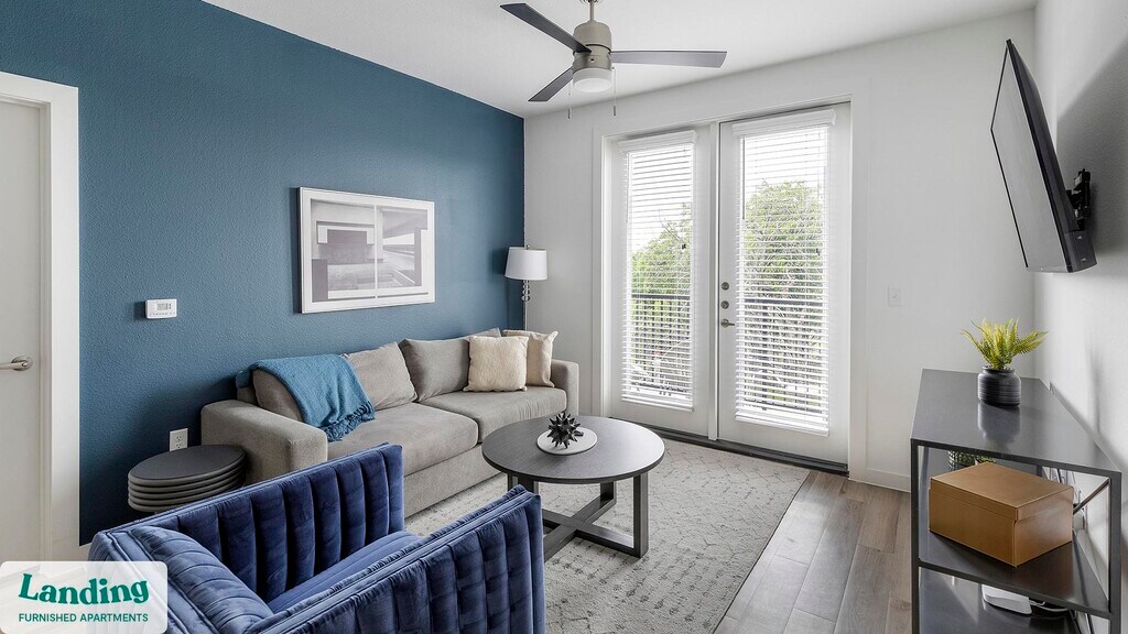 Landing offers flexible lease terms from weeks to months. Please always visit our website or contact us for the latest pricing & availability. Stay longer, save more: 6-Month Minimum base rent: starts at $2257/mo 12-Month Minimum base rent: starts at $2122/mo Landing offers flexible leases across a network of over 35,000 fully-furnished apartments throughout 375+ cities so you can rent on your terms, practically anywhere, and avoid the hassle of paying deposits or application fees. Visit to learn about all the benefits of a Landing membership, see our competitive up-to-date pricing, explore available apartments, take virtual tours, and make reservations online without jumping through traditional rental hoops. Landing's apartments at The Draper are designed for comfortable, easy living, with the ability to stay as long as you like. Experience living with Landing Every apartment is outfitted with all the modern essentials including: custom-designed furnishings, a fully-equipped kitchen with deluxe stainless steel appliances, a gourmet coffee maker, premium linens, Smart TVs, and incredibly fast, reliable internet for working from home. When you live with Landing, you'll enjoy a hassle-free experience with the added benefit of 24/7 access to our dedicated member experience team. Some of the nitty-gritty: a background check and proof of income are required; we're completely smoke-free; bundled utility packages and pricing vary based on length of stay; pet-friendly options available; listed price reflects a 12-month minimum stay.