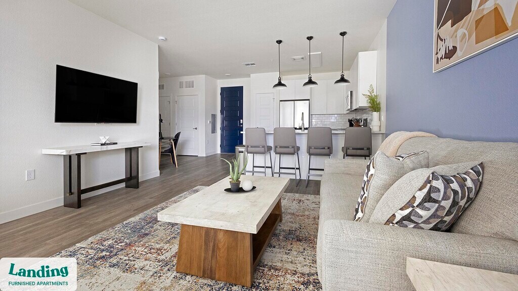 Landing offers flexible lease terms from weeks to months. Please always visit our website or contact us for the latest pricing & availability. Stay longer, save more: 6-Month Minimum base rent: starts at $2695/mo 12-Month Minimum base rent: starts at $2245/mo Landing offers flexible leases across a network of over 35,000 fully-furnished apartments throughout 375+ cities so you can rent on your terms, practically anywhere, and avoid the hassle of paying deposits or application fees. Visit to learn about all the benefits of a Landing membership, see our competitive up-to-date pricing, explore available apartments, take virtual tours, and make reservations online without jumping through traditional rental hoops. Landing's apartments at Avian are designed for comfortable, easy living, with the ability to stay as long as you like. Experience living with Landing Every apartment is outfitted with all the modern essentials including: custom-designed furnishings, a fully-equipped kitchen with deluxe stainless steel appliances, a gourmet coffee maker, premium linens, Smart TVs, and incredibly fast, reliable internet for working from home. When you live with Landing, you'll enjoy a hassle-free experience with the added benefit of 24/7 access to our dedicated member experience team. Some of the nitty-gritty: a background check and proof of income are required; we're completely smoke-free; bundled utility packages and pricing vary based on length of stay; pet-friendly options available; listed price reflects a 12-month minimum stay.
