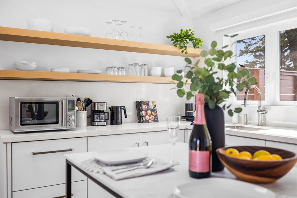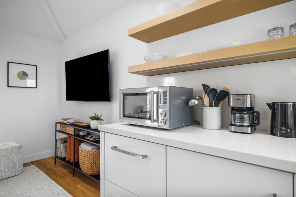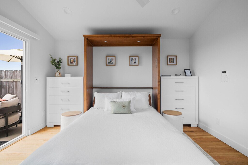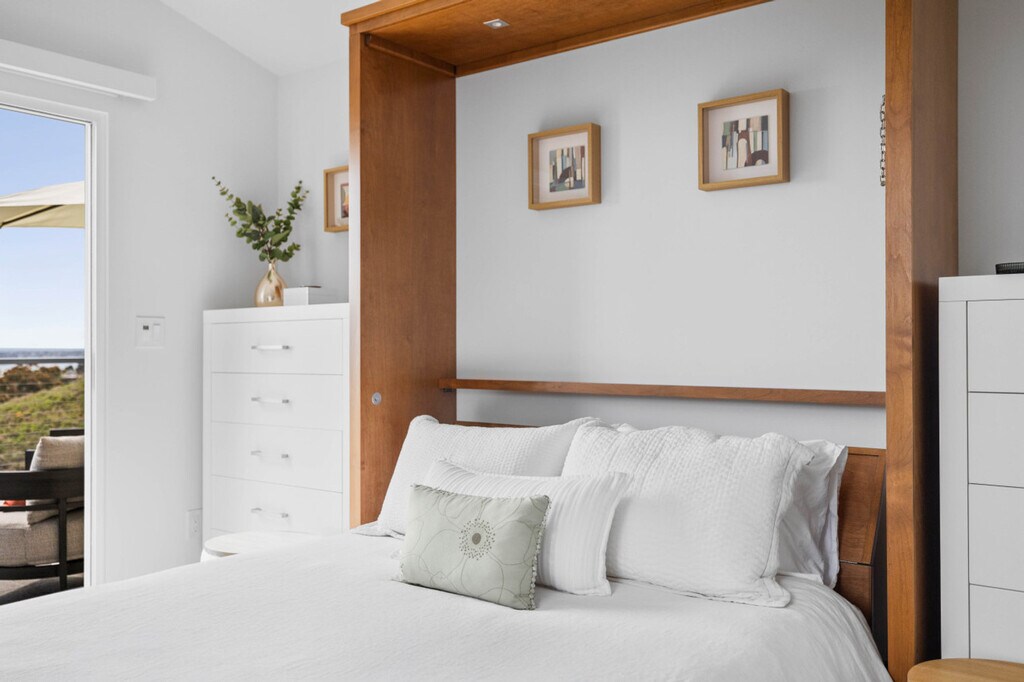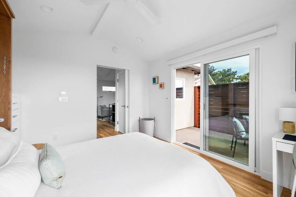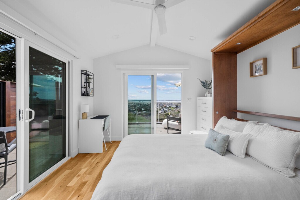 Feel at home in our brand new bungalow, perfect for doctors, attorneys, travel nurses, and remote workers. This guesthouse offers private access, a fully gated and private area, and high-end furnishings. Enjoy the firm "Cooling Foam" queen bed and start your stay with fully stocked essentials. Monthly rentals only. Whether you're sipping your morning coffee as the sun rises or winding down with a glass of wine at sunset, the panoramic views from this home are simply unforgettable. The comfortable space includes a high-end comfy queen bed, blazing-fast Wi-Fi for remote productivity, and a smart TV with streaming services. The amazing kitchenette features brand new appliances, including a Breville Oven/Microwave/Airfryer, 2-burner Induction Hotplate, and more. Washer and dryer are available in the unit for your convenience. Free ample street parking is available, with paid driveway parking as an option. Filming or production work may be allowed with an additional fee and disclosures. Located on a secluded cul-de-sac, this home offers super private and safe parking while being close to everything San Diego has to offer. Rental cars are available with a monthly discount. The property is equipped with 24/7 monitored security with exterior cameras and a device that monitors the environment inside the property to ensure a pleasant stay. Important house rules include no parties, no extra visitors, no smoking anywhere on the premises, and no pets, including Emotional Support Animals. Quiet hours are from 10 p.m. to 9 a.m. Third-party bookings are subject to an additional $1000 fee. For monthly guests, there is a utility cap of $200, with guests responsible for any overages. Includes blazing-fast Wi-Fi for remote productivity.
