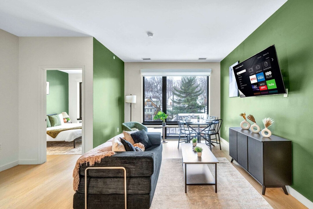 Enjoy a relaxing family getaway and feel at home in this modern 1-bedroom apartment in the heart of Cleveland! Located in the university belt, it's perfect for couples or small families. Please note that there are no elevators at this property, so guests need to walk upstairs. The living space features an innovative open-concept design that blends the living and dining areas with the kitchen, creating a modern and sleek living experience. It features a fully equipped kitchen with a microwave, stove, oven, refrigerator/freezer, toaster, coffee maker and coffee essentials, electric kettle, sink with hot and cold water, glasses, silverware, pots and pans, and a dining table with chairs. The stylish living room has a sofa bed, chair, 4K 58" HDR smart TV, and coffee table. The bedroom has a king-size bed with pillows, linens, and sheets, an office desk and chair, reading lamps, and a 43" smart TV. The inviting full bathroom is completely private and separated from the main room and is stocked with essential toiletries, including a bath with a shower, wash basin, mirror, toilet, towels, hand towels, and washcloths. Parking is available on the premises, and instructions will be given at check-in. Pets are allowed depending on size or if they are service animals, and an additional cleaning fee of $20 per pet per night is required, with a 2 pet maximum and only cats/dogs allowed. You’re close to hospitals/clinics, museums, universities, great restaurants, cozy cafés, neighborhood markets, and scenic parks. Nearby places include Cleveland Hopkins International Airport (16.3 miles and 25 mins drive), Cleveland Medical Center (0.2 mile and 1 min drive), and Cleveland Botanical Garden (1.1 mile and 5 mins drive). Restaurants and bars include Presti's Bakery (0.4 mile and 1 min drive), Etna (0.3 miles and 1 min drive), and Mama Santa's (0.4 miles and 2 mins drive). Nearby markets include Forest Hills Shopping Center (2.0 miles and 7mins drive), FairFax Market (1.2 miles and 7 mins drive), and Grocery Outlet (1.0 mile and 5 mins drive). A safe, walkable neighborhood makes it easy to explore. Quiet hours are between 10pm and 8am every day, and noise complaints or any violation of this rule may result in cancellation of booking and removal from property without refund. There is a strict no-party policy, and if there is a party of any kind, the police will be called and everyone will be removed from the property with no refunds. No unauthorized guests are allowed at the unit, and there is a $100 fine per guest if discovered. Smoking is prohibited without exception on this property, and if any signs of smoking are found in the unit or on the premises, a fine of $500 will be imposed, no exceptions. If you are found to have brought pets without prior notification, there will be a $500 fee. There are noise monitors installed in the units that measure the noise levels in decibels, and if tampered with, there will be a fee. Security cameras are in the hallways for security. You may be charged extra for cleaning if the property is left in a state that necessitates additional cleaning. Lost or unreturned keys will incur a $500 fee. For delayed checkout, there will be a $500 late checkout fee, no exceptions. [SI]