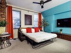 Feel at home in this contemporary and luxury 1-bedroom apartment with an urban feel, perfectly located in the historic Old City neighborhood. Steps away from Independence Hall, Liberty Bell, and Elfreth’s Alley, this apartment is a perfect fit for business travelers, healthcare professionals, or families visiting Old City. This apartment comfortably sleeps two in a king-size bed and features a full kitchen with a refrigerator, dishwasher, stove/oven, and microwave. Enjoy fresh linens, towels, toiletries, and the convenience of an in-unit washer/dryer. On-site parking for a small car or small SUV is available for an additional fee. Valet and garage parking are available just one block away at Old City Parkominium, 215 N 2nd St, Philadelphia, PA 19106; pricing varies by day of the week. Street parking is free on Sundays and metered Monday through Saturday, from 8 AM to 8 PM. Explore America’s most historic square mile with ease. Walk to Penn's Landing, Morgan’s Pier, and Dave & Busters. Enjoy nearby restaurants like Torch-Wood Café, Raddichio Café, and Zahav. Discover historic sites such as Independence National Historical Park, the Liberty Bell, and Elfreth’s Alley. The apartment is also conveniently located near the Market-Frankford subway line and a short ride away from Philadelphia International Airport and Philadelphia's sports arenas. Extra guest fees apply after the first guest. Pets are allowed on a case-by-case basis with a fee of $50 per pet, up to a maximum of 2 pets, with the total pet fee not exceeding $175 per pet per month. Guests are responsible for cleaning up after their pets, and pets must be well-behaved. Pets are not allowed on furniture. Quiet hours are after 10:00 pm. Check-in is any time after 4 PM, and check-out is by 10 AM. A fee of $50 per night per guest/pet will be charged for undeclared or unauthorized extra guests or pets. Every 30 minutes after the standard check-out time will incur an additional $75 fee. Smoking, parties, and events are not allowed. Guests are required to remove garbage from the home during their stay and will pay any garbage or automotive-related city fines imposed by the apartment complex. For long-term stays of 30 days or more, extra cleanings are required once per month. Includes a private workspace and fast Wi-Fi.