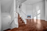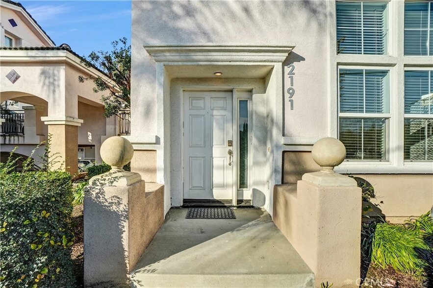Ideally located within walking distance to Fullerton College, this popular tri-level end-unit is filled with natural light from numerous windows and offers approximately 1,500 square feet of well-designed living space. The home features two bedrooms, three bathrooms, a spacious loft, and a dedicated dining area.A grand entry welcomes you into the living room with dramatic 14-foot soaring ceilings and a stunning marble fireplace. The second level offers a generously sized loft, guest bathroom, and a convenient laundry area with washer and dryer included. The kitchen showcases white cabinetry, Black Galaxy granite countertops, a subway tile backsplash, and stainless steel appliances, including a refrigerator. The adjacent dining area opens to an expansive deck perfect for entertaining, gatherings, and barbecues.The third level features two bedrooms, two upgraded bathrooms, and a den or office that leads to a second private deck. Both upstairs bathrooms are enhanced with quartz countertops and white cabinetry.Additional highlights include wood flooring throughout, a walk-in closet with built-in organizers, mirrored closet doors, built-in storage cabinetry, and a two-car garage with direct access. This bright and inviting home truly offers comfort, style, and an unbeatable location you ll love living here!