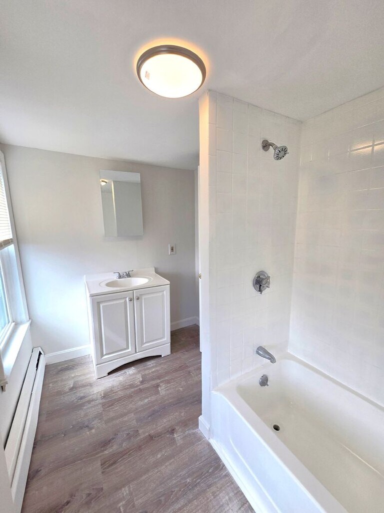This third-floor unit includes over 700 sq ft of spotless living space with fresh paint, brand new cabinets, and new flooring throughout Renovated kitchen with stainless steel appliances, new dishwasher, new cabinets, and countertops Spacious bed with ample closet space, and great natural lighting Spotless bath with a full tub, new vanity, and luxury vinyl flooring Heat and hot water included, tenant is responsible only for electricity One off street parking spot included Cats are negotiable Located just one minute to I-95, and nearby Agnes E. Little Elementary School, parks, convenience stores, and a short drive to the new MBTA commuter rail station