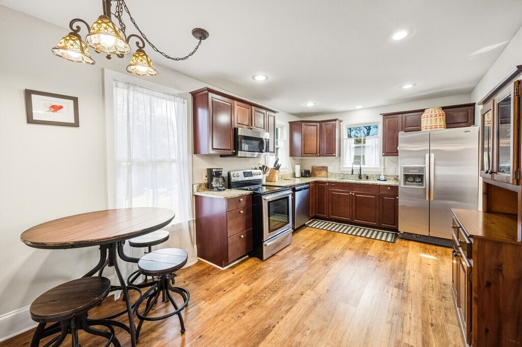 Experience the charm of downtown Georgetown with The Oaks House, a historic four-bedroom home that offers a cozy retreat. With two full bathrooms and a half bathroom, this residence comfortably sleeps eight guests. The property features a king-size bed, two full beds, and two twin beds, ensuring ample space for everyone to feel at home. Nestled in the heart of Georgetown, this home is surrounded by the warm embrace of Southern hospitality and oak-lined streets. Just a short stroll from Front Street, you are only a two-minute walk to the Kaminski House and the Harborwalk, making it an ideal location to explore the local attractions. This property is pet-friendly, allowing you to bring your furry friends along for the adventure. However, smoking is not permitted on the premises. Check-in is flexible, allowing you to start your stay on any day of the week. [SI]