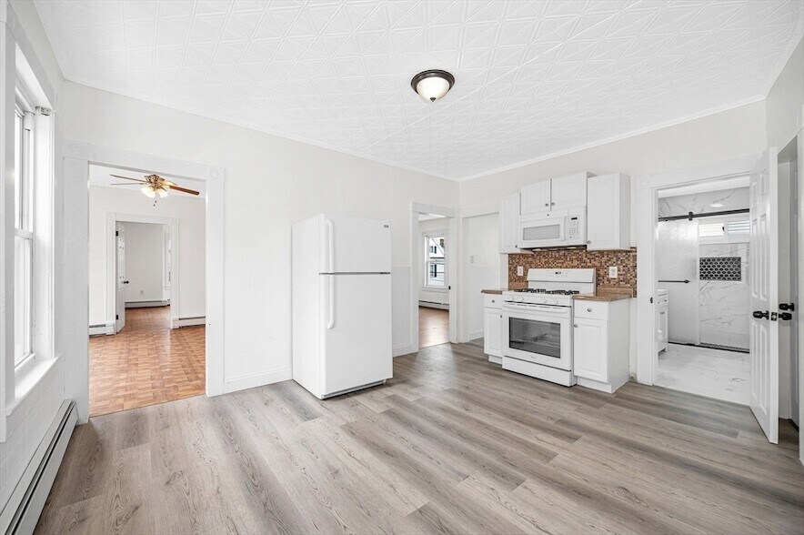 Freshly painted and updated 3-bedroom, 1-bath apartment located on the 2nd floor, offering a bright and comfortable living space. This well-maintained unit features a functional layout and includes one off-street parking space. First month s rent, last month s rent, and security deposit are required. Renter s insurance is required. No pets and no smoking. Washer and dryer in the basement for tenant usage. Ideal for tenants seeking a clean and move-in-ready home.