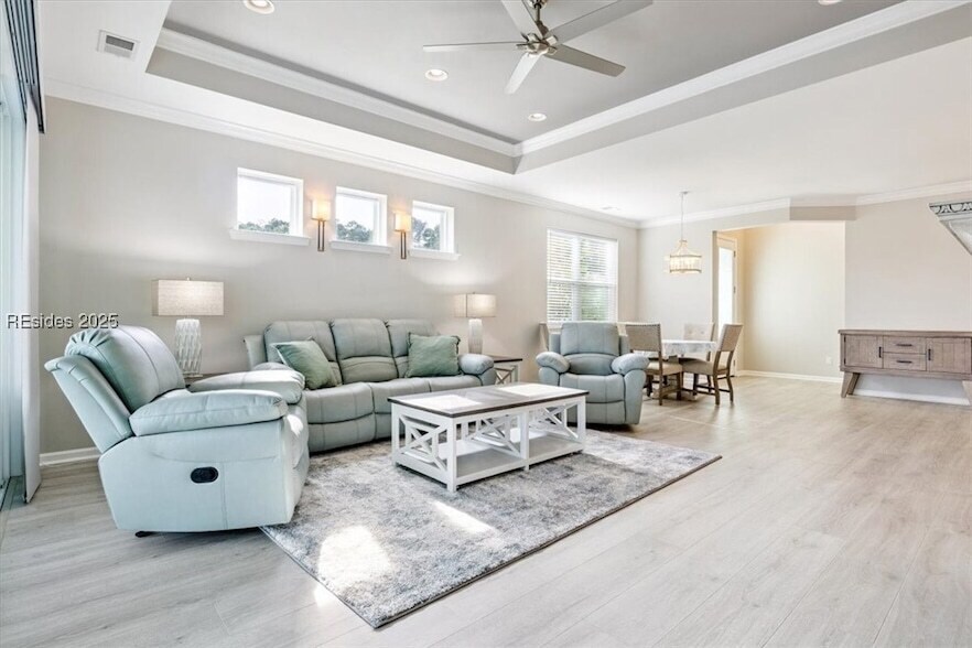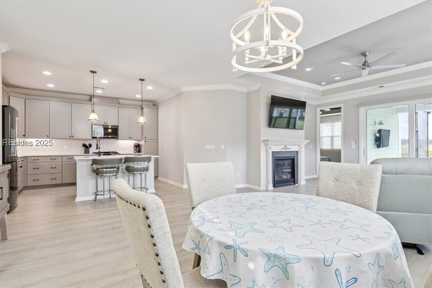 Welcome to paradise! This stylish Lucia model villa offers breathtaking lagoon views and an oversized lot, providing an idyllic retreat. Inside, the open floor plan features a custom fireplace in the living room, creating an ambiance of elegance. The kitchen boasts stainless steel appliances, upgraded quartz counters, and 42 cabinets, complemented by under-cabinet lighting and a tin backsplash. Luxury touches include crown molding, 8 doors, and laminate flooring throughout. The main bedroom and office showcase board and batten walls, while a spacious second bedroom offers comfort for guests. Available April 1- 2026