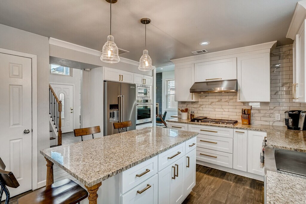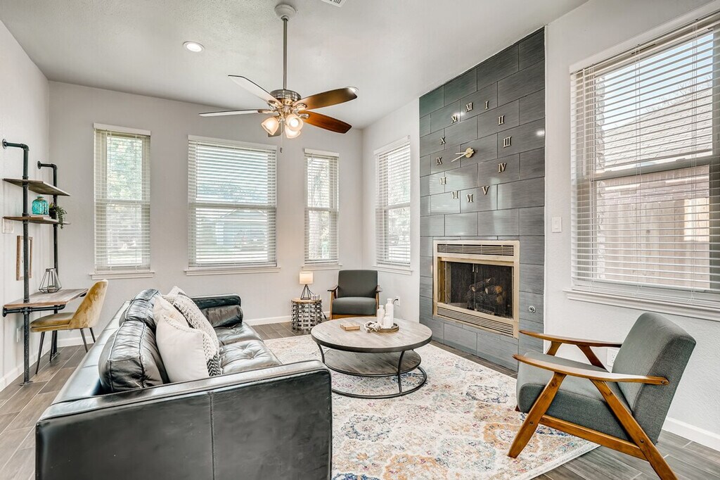 Feel at home in this gorgeous property, perfect for relaxing with family and friends or working from home. This beautifully renovated home features a modern kitchen and bathrooms, two Roku TVs, comfortable beds, two living areas, and a spacious backyard. Located in a peaceful neighborhood, it offers easy access to Austin's attractions and Round Rock's offerings, including Dell Headquarters, Dell Diamond, Kalahari Waterpark and Resort, and the Play for All Abilities Park. The home is equipped for long-term stays with plenty of kitchen basics and supplies, towels, linens, a washer/dryer, and a BBQ grill. Each of the three bedrooms offers comfortable beds for a good night's sleep. The primary bedroom retreat features a king-size bed and a 50-inch TV, while the newly remodeled kitchen is perfect for home chefs with its gas stove and spacious kitchen island. Enjoy a quick cup of coffee from the Keurig or make more with the drip coffee maker. The second living room features a high-end, super-comfy couch and a 55-inch Smart Roku TV. We'd love to welcome families with a portable crib and high chair available for use. Well-behaved, housebroken pets are welcome with a $200 pet fee per stay to cover extra cleaning. The property features a good-sized, fenced backyard, perfect for outdoor picnics and grilling. The neighborhood is peaceful and family-friendly, providing a serene environment for your stay. You will have access to one parking space in the garage, with additional parking available in the driveway or on the street. The location offers easy access to Austin's attractions and Round Rock's offerings, including Dell Headquarters, Dell Diamond, Kalahari Waterpark and Resort, and the Play for All Abilities Park. Pets are not allowed on any furniture or beds. Please be mindful of barking, especially at night, out of respect for the neighbors. The gas fireplace is not functional. Roku TVs are loaded with apps and accounts for Netflix, Hulu, Disney+, and Peacock, but no live TV or cable access is provided. You are welcome to load your own apps to the TVs. Fast Wi-Fi is available throughout the house, with a modern desk space in the living room and an optional desk and chair set-up that can be placed in one of the bedrooms for flexible work or school from home. A laptop computer is not included.