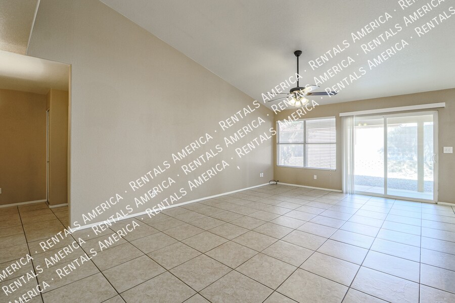 This beautiful 4 bed 2 bath home offers a living room/family room floor plan. Eat in Kitchen opens to the family room and features granite counter tops, an island, lots of cabinet space and stainless steel appliances. Master bedroom features large walk in closet, Master bath features a double sink. Easy to maintain landscape. Enjoy access to the community pool! Owner installed new fridge. Hurry this one won't last! *One Time Admin Fee: $300, Pet Deposit: $300/pet (if applicable), Service Fee 2%. Renter's Benefit Package $39/month. Helping Heroes Discount Available! Carpet Ceramic Tile Community Pool Disposal Garage Pets Allowed Vaulted Ceilings