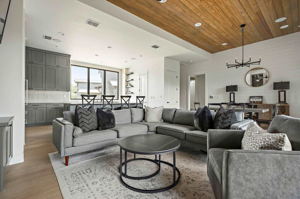 Feel at home in this spacious retreat with 3 luxe levels of indoor-outdoor living! The ground-floor patio is perfect for outdoor entertainment, complete with an outdoor smart TV and a queen sofa bed. The second-floor deck features a gas firepit. Inside, the second-floor living area offers a stylish inset fireplace, a spacious sectional, and a large smart TV. The sleek chef’s kitchen features stainless steel appliances, a five-burner gas range, and a dedicated beverage fridge. On the top floor, a second furnished lounge offers additional sofa seating and another smart TV. This level includes two bedrooms, each with its own en-suite bathroom: one with a king bed, and another with a queen bed and a bunk bed. With central air conditioning, complimentary Wi-Fi, and a full-size washer and dryer, you’ll enjoy all the comforts of home. The Reserve at Lake Travis is a private luxury community located just west of Austin along the south shore of Lake Travis. With direct access to Lake Travis, you're free to boat, swim, wakeboard, water ski, or cruise. Explore championship golf courses, browse shops and restaurants at the Hill Country Galleria, or grab a bite at one of the area’s local diners. Downtown Austin is just a scenic 45-minute drive away. Restaurants nearby include TR Restaurant - Lakeway Resort & Spa, Sp Brazilian Steakhouse, The Grove Wine Bar & Kitchen - Lakeway, The Dining Room at Lake Austin Spa Resort, and Steiner Ranch Steakhouse. Local attractions nearby include Dragon Park, Lakeway City Park, Lake Travis Zipline Adventures, Volente Beach Resort and Waterpark, and Austin Aquarium. Grocery and shopping nearby include Target, Homegoods, H-E-B, Randalls, and Hill Country Galleria. No pets are allowed. Smoking is not allowed in the premises and will incur a minimum fee of $250, with the total charge potentially higher if the property's condition renders it temporarily unrentable. Parties and unauthorized events are not allowed. Quiet hours are from 10 pm to 7 am. There are exterior cameras for security purposes only; tampering with them may incur fees. If any furniture is moved, please place it back in the original space where it was found. Failure to return any keys used to the lockbox will result in a $100 replacement fee per key. Additional fees may be incurred if personal items are left behind. Please do not set the home's thermostat above 76 (heating) or below 68 (cooling). To avoid overloading the system, please adjust the thermostat by no more than 2 degrees per hour and keep the doors and windows closed as much as possible. All pool and water attractions, food and beverage areas, and The Lodge are currently closed. Drought conditions may affect Lake Travis water levels and may be lower than shown in listing photos; refunds or cancellations cannot be offered based on water levels. Common areas at The Reserve at Lake Travis are not managed by the partner; bring your own supplies and use them at your own risk. [SI]