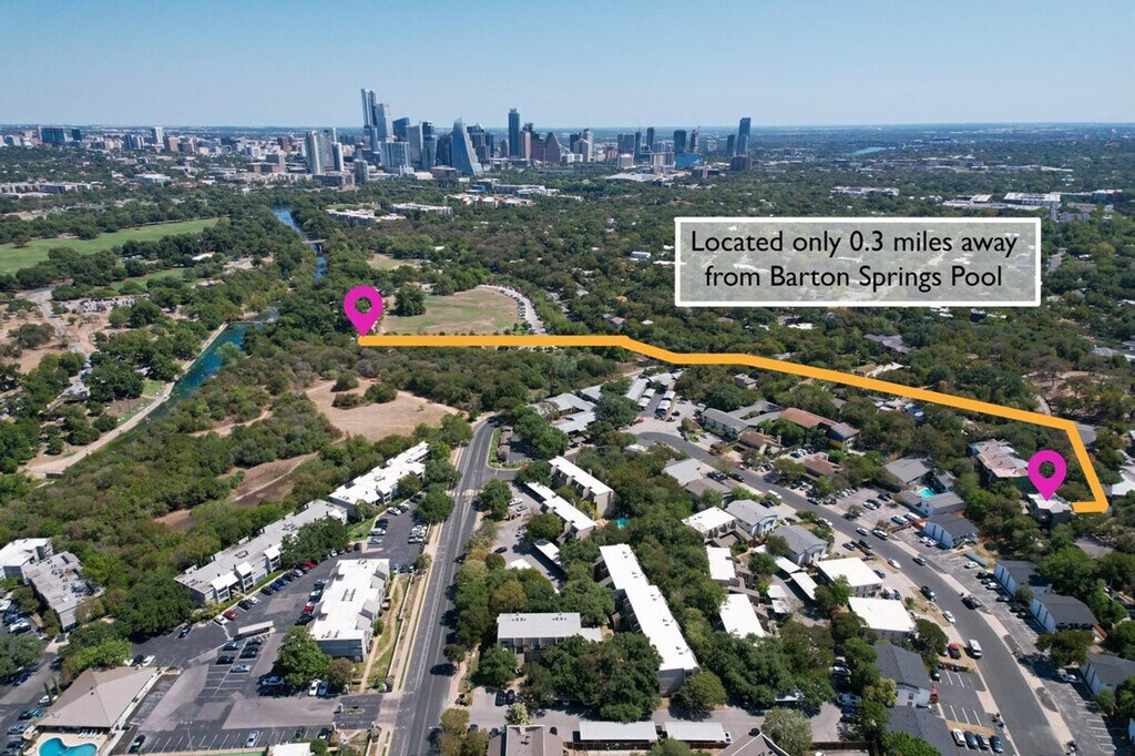 Feel at home in this charming one-bedroom condo, The Sweet, located just .33 miles from Zilker Park and Barton Springs Pool and approximately 2 miles from Downtown. Nestled in a quiet setting, this unit offers a private front patio down a flight of stairs from Trailside Drive, ensuring a peaceful stay. The Sweet features a Tempurpedic king-size bed in the bedroom, a large closet, and a full-length standing mirror. The kitchen is fully furnished with everything needed to cook a meal or enjoy a fresh cup of coffee with a drip pot, coffee beans, and grinder. Additional kitchen appliances like an Instant Pot, popcorn popper, waffle iron, and hand mixer are available upon request. The condo is equipped with essentials such as irons, ironing boards, hair dryers, shampoo, conditioner, body wash, lotion, face wipes, bar soap, and towels, including beach towels for Barton Springs Pool. A cleaning fee of $105 applies for shorter stays and $150 for stays of 30+ days. If bringing a pet, a fee of $50 is charged for shorter stays and $100 for monthly stays. Pets should be kept off the furniture and in a crate or behind a gate in the kitchen when left alone. Crates, gates, and couch covers are available upon request. Welcome to Zilker Park, one of Austin's most beloved neighborhoods. Enjoy easy access to Barton Springs Pool, the hike and bike trail around Lady Bird Lake, boating on the lake, a giant playscape and kiddie train, the Garden Center, Nature Center, Hillside Theater for summer shows, and the great lawn where ACL is held. The City of Austin enforces a 10:30 PM noise curfew. A second noise complaint may result in immediate eviction without refund. Smoking or vaping is only allowed outside using the provided ashtray. The property offers contactless check-in with a keyless deadbolt. [SI]