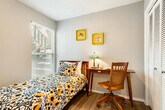 Feel at home in this charming two-bedroom apartment located just 0.33 miles from Zilker Park and Barton Springs Pool. This unit features a "Hollywood" bathroom with a second sink/vanity in the master bedroom, which can be closed off from the main bathroom. Enjoy the sun shining through the floor-to-ceiling windows in the dining area or relax on the covered patio with comfy furniture. The kitchen is fully equipped with essentials such as a coffee maker, coffee grinder, electric water boiler, toaster, blender, cookware, silverware, ceramic and plastic dishes, a four-burner stove, oven, and microwave. Additional amenities include bed linens, four sets of towels, four beach towels for Barton Springs, an iron and ironing board, a hair dryer, and free laundry in the laundry room on the first level. Pets are welcome with a fee ranging from $50 to $100, depending on the length of stay. For monthly stays, an additional $50 will be added after booking. Cleaning fees are $115 for short stays and $200 for monthly stays. Mid-stay cleanings are available for $25 per hour. Guests receive a 10% discount on bike rentals or tours with Barton Springs Bike Rental and Tours. There is one reserved off-street parking space right in front of the door and additional free parking on the street. Nestled in the beloved Zilker/Barton Hills neighborhood, this apartment offers access to huge trees, quiet streets, and proximity to Barton Springs, Zilker Park, and the hike and bike trail. Just 2 miles from downtown, you're also close to restaurants and shopping on S. Lamar, S. Congress, and S. 1st streets. Public transport is accessible with a bus stop about 2/3 mile away on Barton Springs Rd, and bike and scooter rentals are plentiful. Contactless check-in is available with a keyless deadbolt. Additional linens, floor sleeping mat, bed rails, baby equipment, pet furniture covers, dog crate, or baby gate are available upon request. Important house rules are posted in the property. The apartment includes a desk in the smaller second bedroom, making it suitable for remote work. High-speed Wi-Fi is available, ensuring a seamless work-from-home experience. A laptop computer is not included. [SI]