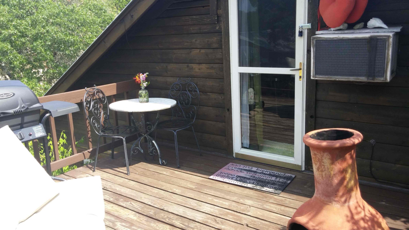 Property Id: 1772508 300 square ft. Loft efficiency apartment. Fully furnished with Queen size bed. Wi-Fi and all bills included. Private entrance and deck with beautiful views. Set on 9. 5 acres with roses, flowering bushes, seasonal creek, and fire pits.