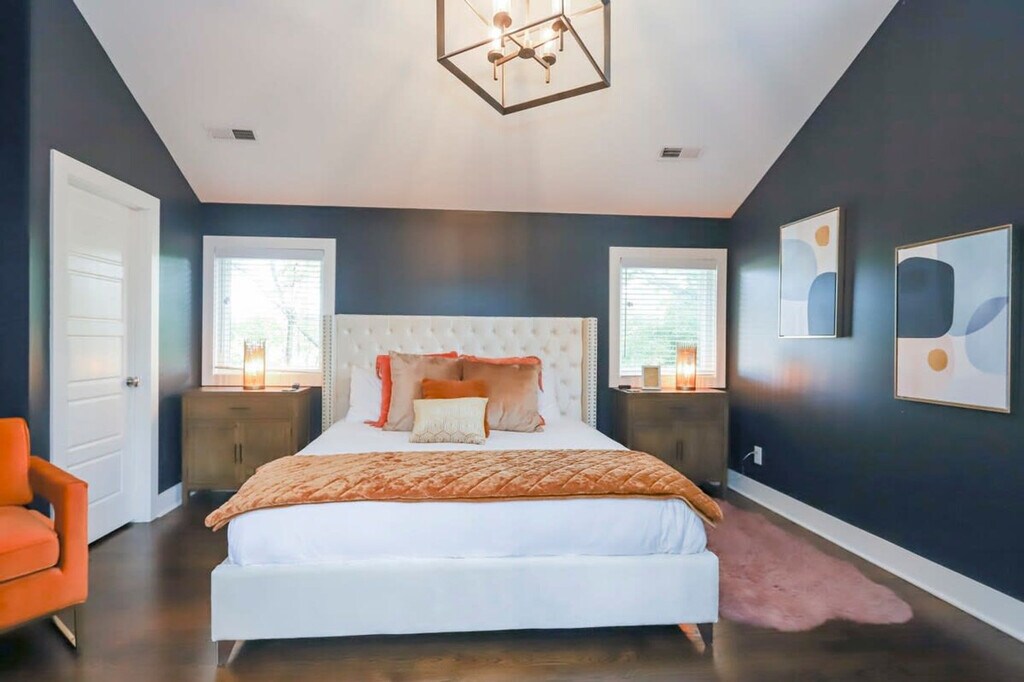 Experience Nashville in style at this elegantly decorated retreat, perfectly situated just 0.5 miles from Belmont University. Stroll to local eateries, coffee shops, and boutiques, with a brand-new Publix conveniently located next door. Unwind in four beautifully appointed bedrooms with en-suite bathrooms and gather in the vibrant open-concept living room and kitchen, ideal for large groups. This apartment features four bright and spacious bedrooms, including two king-size beds, two queen-size beds, and two queen sleeper sofas. There are four full bathrooms, with one offering a walk-in shower and three featuring a bathtub and shower combo. The modern kitchen is equipped with new stainless steel appliances, and the open floor plan includes a living room and dining area. Enjoy the private balcony with a cozy dining area, two large flat-screen TVs with standard cable and satellite, free Wi-Fi, and a dedicated workspace. Additional amenities include a carport with two free parking spaces and an on-site washing machine and dryer. Guests staying for three weeks or longer will incur an additional cleaning fee, which is not included in the booking price but will be charged as an add-on. There is also an additional $400 fee for guests wanting to book this property for filming and/or photography, with a location agreement required prior to the shoot date. Conveniently located near downtown Nashville, this home is just a short Uber or Lyft ride away from some of the best restaurants, bars, and attractions the city has to offer. You’re no more than 2 miles away from Broadway and only 15 minutes from BNA Airport. The neighborhood is peaceful yet close to all the action, with popular bars, restaurants, and coffee shops in Melrose just a short walk away. Explore 8th Avenue's shops, boutiques, and cafes, or venture into town to discover its vibrant live music scene. This house is located in a semi-residential area and is not suitable for hosting rowdy groups. Disturbing guests will be asked to leave. The property is absolutely not to be used as a place of business or pop-up business of any kind. Check-in is at 4 pm and check-out is at 10 am. Early check-ins or late check-outs must be pre-arranged, and any non pre-arranged late check-outs will result in a penalty. For security, there are exterior cameras to verify who is entering the home. The maximum occupancy is 12 people, and this cannot be exceeded. Upon booking, you will receive a code for entry, which will activate on your check-in day and deactivate on your check-out day. The apartment offers free Wi-Fi and a dedicated workspace, making it ideal for remote work. A laptop computer is not included. Registration Number: [SI]