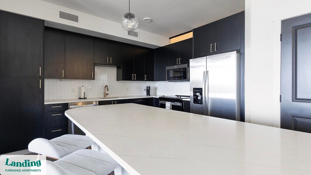 Landing offers flexible lease terms from weeks to months. Please always visit our website or contact us for the latest pricing & availability. Stay longer, save more: 6-Month Minimum base rent: starts at $4149/mo 12-Month Minimum base rent: starts at $3699/mo Landing offers flexible leases across a network of over 35,000 fully-furnished apartments throughout 375+ cities so you can rent on your terms, practically anywhere, and avoid the hassle of paying deposits or application fees. Visit to learn about all the benefits of a Landing membership, see our competitive up-to-date pricing, explore available apartments, take virtual tours, and make reservations online without jumping through traditional rental hoops. Landing's apartments at Park and Main are designed for comfortable, easy living, with the ability to stay as long as you like. Experience living with Landing Every apartment is outfitted with all the modern essentials including: custom-designed furnishings, a fully-equipped kitchen with deluxe stainless steel appliances, a gourmet coffee maker, premium linens, Smart TVs, and incredibly fast, reliable internet for working from home. When you live with Landing, you'll enjoy a hassle-free experience with the added benefit of 24/7 access to our dedicated member experience team. Some of the nitty-gritty: a background check and proof of income are required; we're completely smoke-free; bundled utility packages and pricing vary based on length of stay; pet-friendly options available; listed price reflects a 12-month minimum stay.