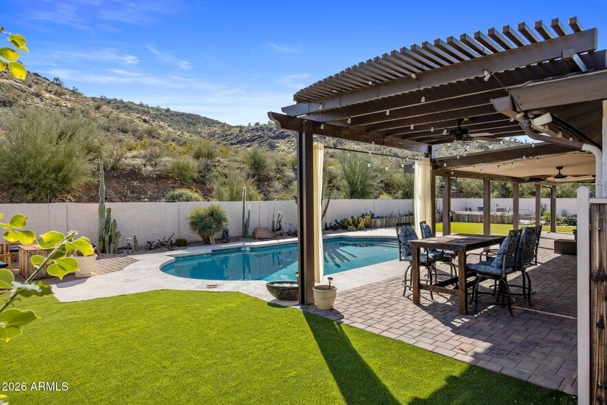 Remodeled home backing to MOUNTAIN PRESERVE with beautiful views and miles of hiking trails! You'll love relaxing in the backyard with covered patio, artificial turf and sparkling, diving-depth pool, all with the Mountain Preserve backdrop. Inside, enjoy a split floorplan with wood-grain tile floors throughout, separate family and living rooms, featuring a floor-to-ceiling flagstone fireplace. Kitchen was remodeled in 2018 with white cabinets, granite counters, stainless steel appliances, and pantry. The spacious primary bedroom is split from the others, offering a walk-in closet and remodeled bathroom. Secondary bedrooms are generously-sized and share a hall bath with travertine tub/shower. Tenant has use of 2.5-car garage plus RV parking. Private location! 6 Months minimum lease term.