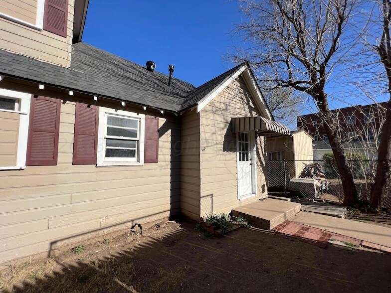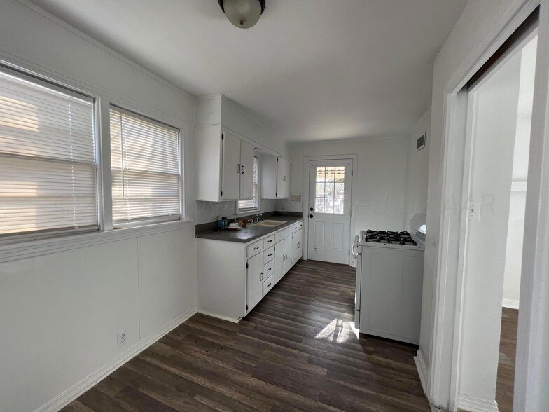 Cute, Updated 1/1/1 Apartment downstairs behind main house, close to Amarillo College. CHA! Neutral Modern Colors! Wood look vinyl flooring throughout! Kitchen w/stove and refrigerator. Living area, bedroom and updated bathroom. Good closet space and storage! 1 Car garage is attached. Washer and Dryer hookups in garage! Entrance from alley. 2211 S. Polk Apt. B