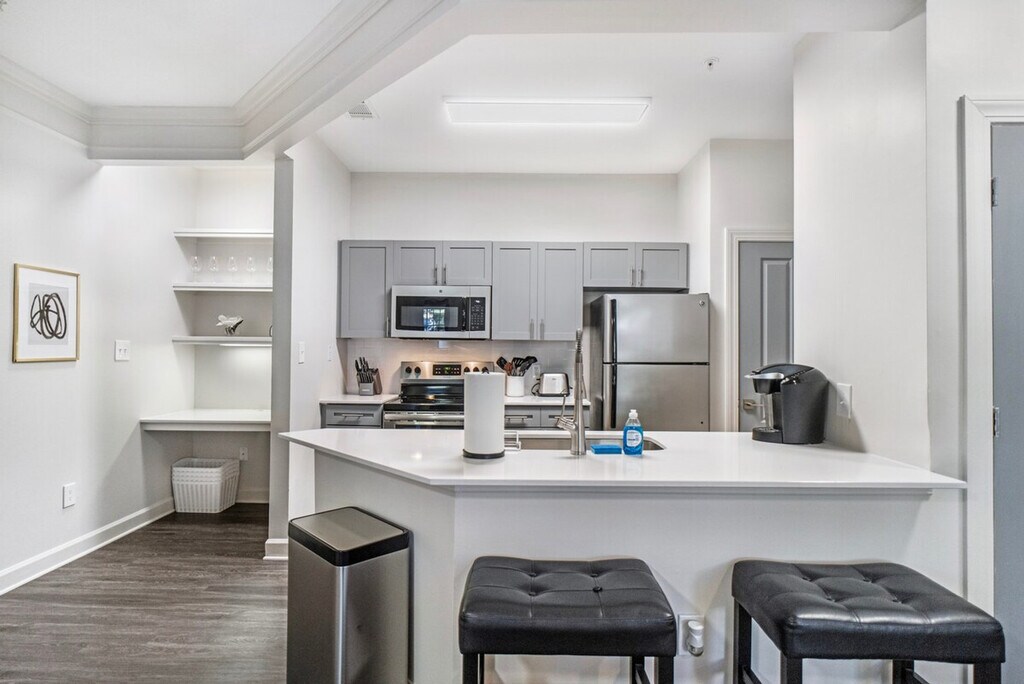 Welcome to your oasis of modern living at Crossroads Plaza in Cary, North Carolina. This meticulously curated furnished 1-bedroom apartment offers not just a home but an experience crafted for comfort and convenience. Thoughtfully designed with modern furnishings and a fully equipped kitchen, you'll enjoy that "feel at home" sensation in this apartment. Whether you're relaxing in the stylish living room or preparing a meal in the kitchen, every detail is designed to enhance your living experience. Parking is available for an additional fee, and pet-friendly accommodations can be arranged with a fee per pet per stay. Located in the vibrant Crossroads Plaza, you'll have easy access to shopping, dining, and entertainment options. The neighborhood offers excellent walkability and convenient public transportation, making it easy to explore Cary and beyond. Check-in is seamless and tech-enabled, ensuring a smooth move-in experience. Smoking and parties are not permitted, and violations may incur penalties. [SI]
