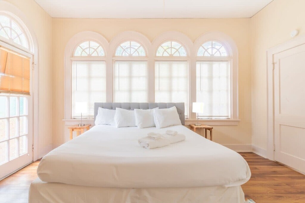 Welcome to Midtown Magic, your ideal stay in Columbus! This spacious 5-bedroom, 3-bathroom home accommodates up to 18 guests. Feel at home in this perfect place for anyone looking for a reliable stay. The spacious front porch will welcome guests to the home. Once inside, you'll see the living room with a large SmartTV, two queen sleeper sofas and additional seating. The dining room features a large table with bench seating with extra chairs off the fully equipped kitchen so everyone can enjoy a meal together! You'll have plenty of space to get a good night's sleep on one of the beds in the five bedrooms. The first bedroom has two queen beds and the second bedroom has two full beds. The remaining three bedrooms have king beds. All bedrooms have closets for personal belongings. There are 3 full shared bathrooms in this home. The rooms in the back of the home are connected, meaning you pass through one room to enter the next. Don't forget to check out the backyard which features a charcoal BBQ grill and swing set for kids! A pack 'n play/travel crib and a vacuum are available upon request. Pets are permitted at this home with a non-refundable pet fee. Located in Historic Midtown Columbus, this home is 2.5 miles from Downtown Columbus and less than 5 minutes to Lake Bottom Park, 10 minutes to the Botanical Gardens, Coca-Cola Space Science Center, and 15 minutes to Fort Moore. Driving is recommended, however Uber and Lyft are readily available as well. The driveway can fit 3 cars. Quiet hours are between 10 PM and 7 AM. If our cleaning crew reports any signs of smoking cigarettes, vapes, e-cigs, pipes, etc. (smell, ash, etc.) in or around the home, an automatic $500 damage charge will be incurred. The same charge applies if cigarette butts are found outside of the home. If marijuana is smoked in or around the home a $500 fee will be charged, and details about the reservation may be turned over to the appropriate authorities. Parties are prohibited at the home. Other events are permitted at the home only with prior approval. You will be responsible for any damage to the home or its furnishings during your stay. Please bag all trash and place it in the bins provided. There is a $100 charge for third party trash removal if an excessive amount of trash is left at the property. Pets must be crated when they are left unattended in the home. Pets are not allowed on furniture or beds, and all waste must be cleaned up from the yard. If there is evidence of pet hair on the furniture, excess hair in the home, stains, or waste found in the yard or home, you will be charged the cost to clean this. Registration Number: STVR-11-23-7536