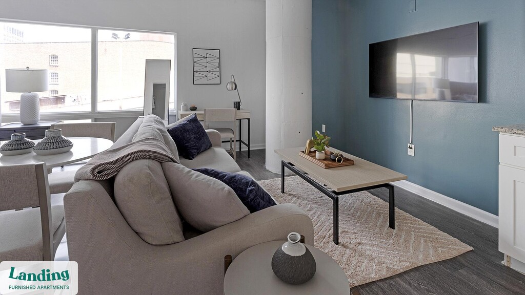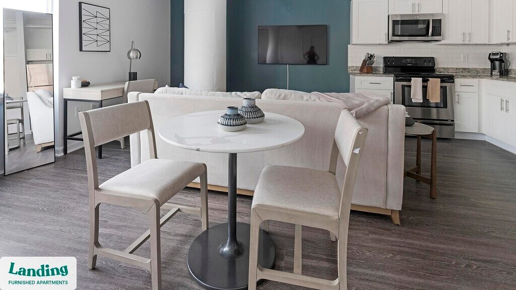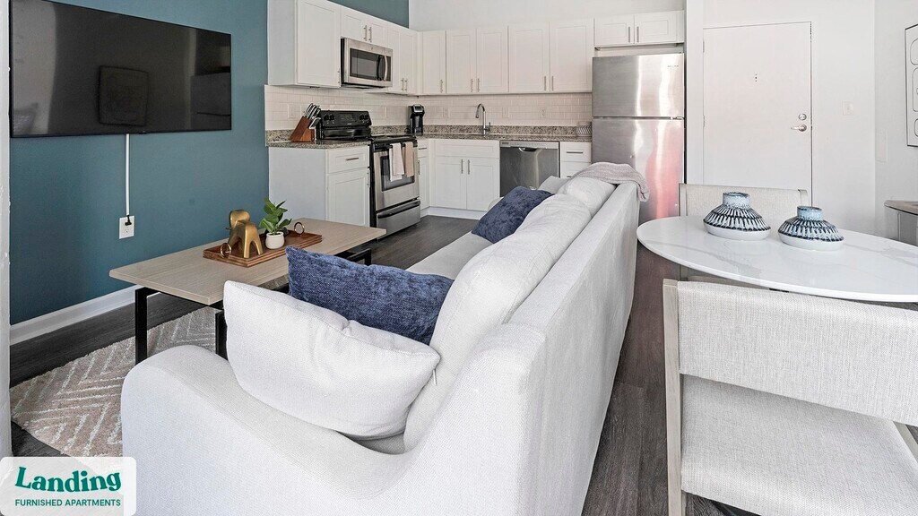 Landing offers flexible lease terms from weeks to months. Please always visit our website or contact us for the latest pricing & availability. Stay longer, save more: 6-Month Minimum base rent: starts at $1475/mo 12-Month Minimum base rent: starts at $1603/mo Landing offers flexible leases across a network of over 35,000 fully-furnished apartments throughout 375+ cities so you can rent on your terms, practically anywhere, and avoid the hassle of paying deposits or application fees. Visit to learn about all the benefits of a Landing membership, see our competitive up-to-date pricing, explore available apartments, take virtual tours, and make reservations online without jumping through traditional rental hoops. Landing's apartments at 222 Saratoga are designed for comfortable, easy living, with the ability to stay as long as you like. Experience living with Landing Every apartment is outfitted with all the modern essentials including: custom-designed furnishings, a fully-equipped kitchen with deluxe stainless steel appliances, a gourmet coffee maker, premium linens, Smart TVs, and incredibly fast, reliable internet for working from home. When you live with Landing, you'll enjoy a hassle-free experience with the added benefit of 24/7 access to our dedicated member experience team. Some of the nitty-gritty: a background check and proof of income are required; we're completely smoke-free; bundled utility packages and pricing vary based on length of stay; pet-friendly options available; listed price reflects a 12-month minimum stay.