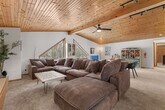 Feel at home in this 6,000 sq/ft Lake Mason waterfront home, a luxury retreat for families and large groups. This home features 1 king-size bed, 6 queen-size beds, 1 double bed and 7 twin beds. This home features a hot tub, beachfront, outdoor dining and games, a fire pit, and a massive deck with stunning lake views, lounge seating, a dining table, and a gas fire. There is also a game room with a pool table, ski ball, air hockey, foosball, and a smart TV. The living room has vaulted ceilings, and the fully stocked kitchen includes a large island, barstool seating, granite countertops, stainless steel appliances, high chairs, and kids dinnerware. Enjoy complimentary coffee or tea and step outside onto the 2,800 sq/ft deck overlooking Mason Lake. The Lake Mason Public Boat Launch is 1/2 mile from the property. A vehicle or boat will be your best form of transportation, and you can dock your boat at the house. Located in a rural area 10 minutes from downtown, this property is on Mason Lake, off a busy road. The driveway is 1/4 mile long, so you do not hear any road noise, but walking on the road itself is not recommended. Nearby attractions include Asgard Underworld Arcade (13 min), Big Sky Twin Drive-In Theater (12 min), Bowman Park (12 min), Canyon Creek Riding Stables (22 min), Christmas Mountain Village (22 min), Crystal Grand Music Theatre (20 min), Dells Army Ducks (17 min), Devil’s Lake State Park (37 min), Devil's Head Resort (35 min), Broadway Street (30 min), H.H. Bennett Studio & Museum (13 min), Justagame Fieldhouse (13 min), Kalahari Waterpark (22 min), Mirror Lake State Park (23 min), Mt. Olympus Water & Theme Park (17 min), Noah’s Ark Waterpark (18 min), Outlets at the Dells (Tanger Outlet Mall) (23 min), Palace Theater in the Dells (20 min), Pirates Cove Adventure Golf (14 min), Ripley’s Believe It or Not! Wisconsin Dells (13 min), Riverwalk Wisconsin Dells (13 min), Rocky Arbor State Park (16 min), Timbavati Wildlife Park (16 min), Tommy Bartlett Exploratory (18 min), Top Secret Upside-Down White House (16 min), Trappers Turn Golf Club (16 min), Wilderness Resort (20 min), Wisconsin Dells Antique Mall (20 min), Wisconsin Deer Park (15 min) and Wizard Quest (12 min). Quiet hours are from 10 PM to 7 AM, and pets are not allowed. [SI]