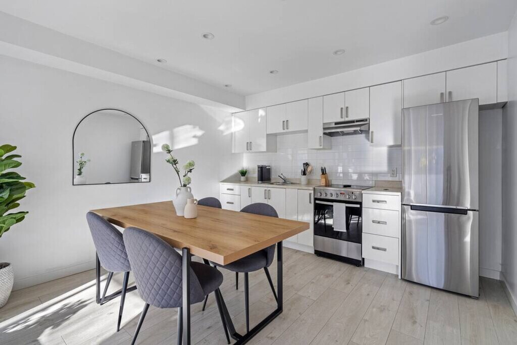 Situated in the peaceful streets of Vancouver's Kitsilano neighborhood, this lovely 1-bedroom condo provides a peaceful ambiance and stylish, comfortable interior design while being central and accessible to Vancouver's best areas and attractions. The surrounding areas are Arbutus Ridge and South Granville, both must-visit neighborhoods within Vancouver. The condo is newly furnished and offers all essentials needed to feel right at home, from fresh linens to a fully stocked kitchen. The space is characterized by bright textures and contemporary furnishing, achieved through brand-new furnishing. It offers a full kitchen, a large living space with a patio, a full bedroom with a queen bed, and a full bathroom. The composition of the condo is breathable and refreshing, expressed through an open-concept layout. Guests will have access to the entire unit and all amenities within, including a shared laundry room within the building. The West Side of Vancouver is known for its tree-lined streets, beautiful homes, and well-manicured gardens. The area is a mix of residential streets and bustling commercial areas. Some of the most popular commercial streets in the area include West Broadway, West 4th Avenue, and West 10th Avenue, all of which feature a variety of boutique shops, restaurants, and cafes. These streets are also home to popular outdoor markets, like the Kitsilano Farmers Market, where visitors can sample locally grown produce and artisanal foods. Getting around Vancouver's West Side is easy with its well-connected transit system. TransLink operates several bus routes, including the 99 B-Line, connecting the area to Downtown Vancouver. The SkyTrain is accessible via the Canada Line and Millennium Line, while the SeaBus provides scenic views of the harbor. The neighborhood is bike-friendly with rental options available, and walking is a great way to explore. It is 2 blocks from Connaught Park, 1 block from the nearest grocery store and pharmacy, 4 blocks to 4th Avenue, and a 15-minute drive to YVR airport. No parties, events, or large gatherings are allowed. No smoking in or on the property. [SI]