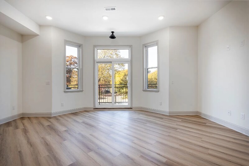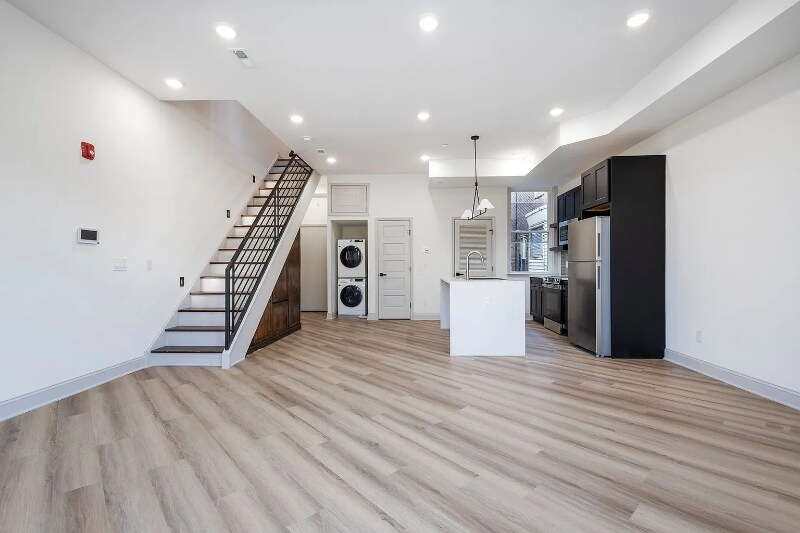 Property Id: 2201337 Designer Finishes & Outdoor Views Await! Experience a home where high-end design meets effortless functionality. Every space has been thoughtfully crafted for modern comfort and timeless style. The bathrooms showcase custom mid-century inspired vanities with matte black fixtures, bold patterned tile, and sleek subway tiling in calming shades of gray and sage. Throughout the home, unexpected touches, like oversized floral wallpaper and striking black metal railings and sophisticated flair. The kitchen shines with dark cabinetry, bright stone countertops, and a statement tile backsplash paired with a rustic wood floating shelf. Smart built-in storage under the staircase offers both beauty and practicality. Step outside to your private balcony and take in sweeping views of the tree-lined street and park. Your own serene escape in the city. Schedule your tour today!