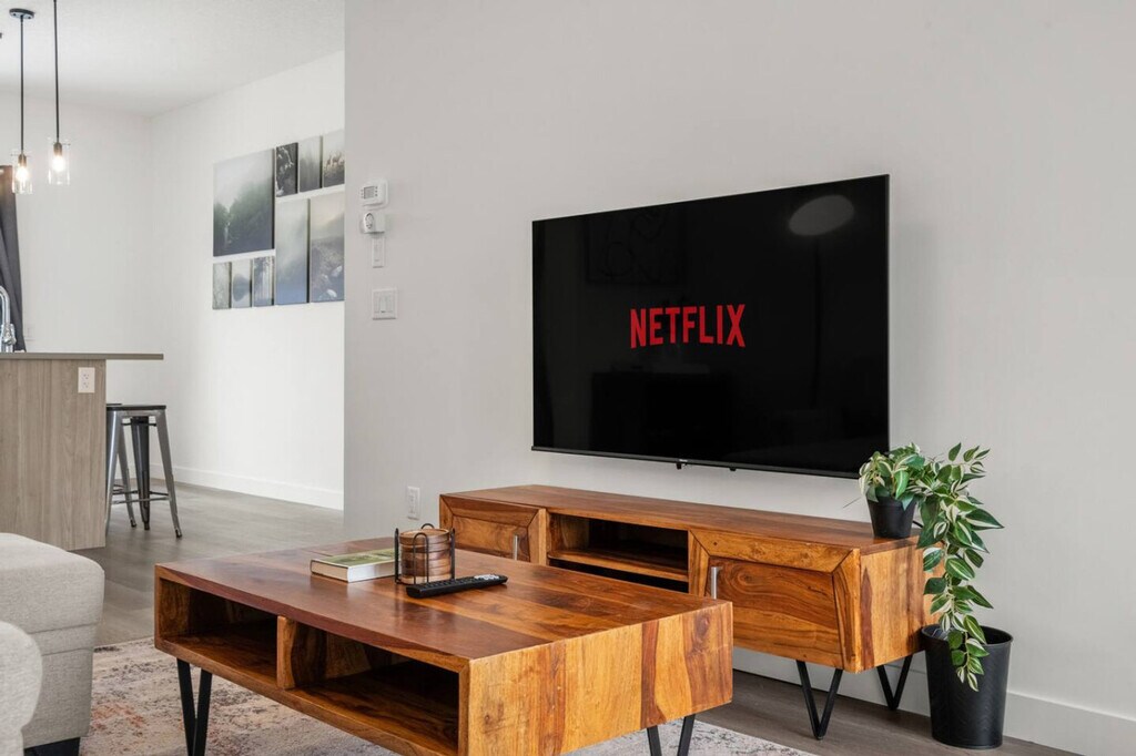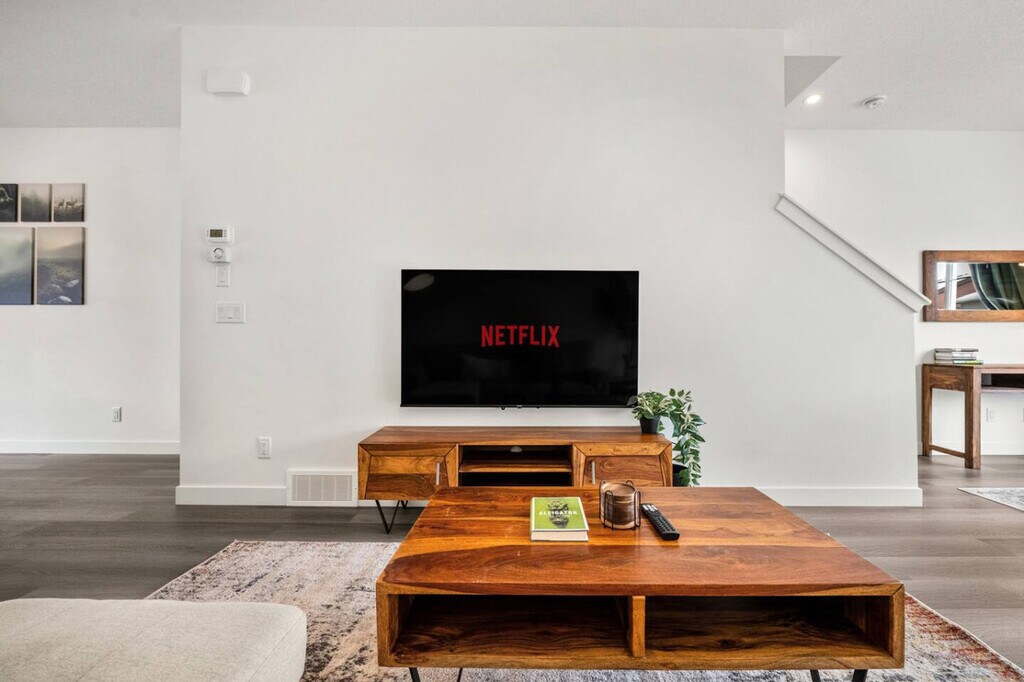 The advertised rate of C$3,916/month is the lowest available price, based on a 1 month(s) stay with a move-in date of April 22, 2026. Rates vary depending on the duration of stay, season, and other parameters. For exact pricing and additional pricing components, please visit our website and enter your desired move-in and move-out dates. The rate is applicable when billed upfront; it can be higher if billed in multiple payments. Feel at home in this luxurious townhome with natural finishes, located minutes away from Winsport Olympic Park and Aspen Landing. This property features a king-size bed, a queen-size bed, and a queen/full sofa bed, accommodating up to six guests. This apartment features a fully equipped kitchen, stainless steel appliances, a 4-burner stove, oven, microwave, refrigerator, freezer, and dishwasher. It also includes a coffee maker, toaster, blender, and other essentials. For entertainment, there is a 55" smart TV with Netflix, board games, and fast Wi-Fi. Additional amenities include a washer and dryer, portable air conditioning, a balcony with a dining area, and a private fitness area. Garage parking is available. Optional upgrades include a National Park entry, welcome basket, birthday decor package, romantic wine & flower package, spa at home package, movie night upgrade, Christmas tree & decor, Halloween decor & pumpkin carving package, winter cozy package, beer tasting kit, diffuser & aroma set, additional bedding & sleeping arrangements, grocery pre-stocking service, and a pet-friendly package, all subject to availability. This apartment is conveniently located 1 minute from Aspen Landing Shopping Centre, 4 minutes from Westside Recreation Centre, 7 minutes from Griffith Woods Park and Signal Hill Shopping Centre, 10 minutes from WinSport, 12 minutes from Mount Royal University, 14 minutes from Downtown Calgary and CF Market Mall, 15 minutes from Chinook Centre and the University of Calgary, 17 minutes from Foothills Medical Centre & Alberta Children's Hospital, 23 minutes from Calgary Zoo & Telus Spark Science Centre, 26 minutes from Calgary International Airport, and 35 minutes from Bragg Creek & Kananaskis Country. Quick access to Stoney Trail & Sarcee Trail makes travel around Calgary and beyond a breeze. Smoking, vaping, and the use of e-cigarettes are strictly prohibited anywhere on the property, and a $250 CAD fine will be charged if there is smoke or the smell of smoke from the unit. Parties, drugs, excessive drinking, and loud music are not allowed. Quiet hours are from 10 pm to 7 am. There is a strict complaint policy: one complaint is a warning, and the second complaint is an eviction. Keep noise under 85db, as there is a noise detector. Includes a dedicated workspace. [SI]