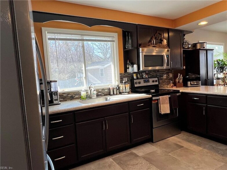 Well-maintained 3-bedroom ranch offering easy one-level living. Features a chef s kitchen with dual sinks and stainless-steel appliances, great for cooking and entertaining. Formal living room plus an open dining, kitchen, and family room layout. Ceramic, Laminate/LVP and tile flooring throughout. Deck overlooks a large backyard with a peaceful spring-fed creek. Above-ground pool included, with pool maintenance provided for added convenience. Enjoy the best of VA Beach living with convenient access to shopping, restaurants, excellent schools, and a prime location just minutes from Oceana Naval Air Station. Neutral finishes and detailed renovations make this home truly move-in ready.