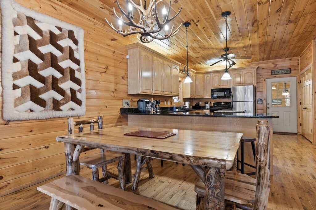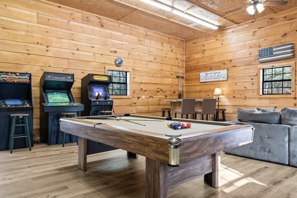 The advertised rate of $4,768/month is the lowest available price, based on a 1 month(s) stay with a move-in date of April 13, 2026. Rates vary depending on the duration of stay, season, and other parameters. For exact pricing and additional pricing components, please visit our website and enter your desired move-in and move-out dates. The rate is applicable when billed upfront; it can be higher if billed in multiple payments. Feel at home in this 4-bedroom home in Epworth, GA, offering everything you need for an amazing vacation. Wake up to the sound of the river, sip your coffee on the deck, and spend your days swimming, kayaking, and floating right from your own backyard. This beautifully appointed mountain home sits directly on a private, swimmable river with kayaks included for guest use. The home offers well-defined living spaces, an open-concept living area with high ceilings, expansive windows, and a cozy indoor fireplace. The fully stocked kitchen and dining area make preparing and enjoying meals a breeze, while each bedroom is thoughtfully furnished. Enjoy the hot tub, fire pit, hammock, game room with arcade games, pool table, air hockey, workspace, TV with sofa, and multiple decks with rocking chairs and views. Up to 2 dogs are allowed for a fee of $125 per stay. If you're interested in a long-term stay, please reach out to inquire about availability. Tucked away for privacy yet just minutes from downtown Blue Ridge, this home is near Mercier Orchards, Bear Claw Vineyards, local wineries, hiking trails, and scenic mountain attractions. Explore attractions such as Expedition: Bigfoot! The Sasquatch Museum, Escape Blue Ridge, Jacks River Falls, and Blue Ridge Adventure Park. Enjoy restaurants such as The Waterfront Bar, The Copper Grill, Burra Burra on the River, State Line BBQ, and Ferraro's Kitchen Blue Ridge. Check-in is at 4pm and check-out is at 10am. No cats are allowed. Guests must be 21 years or older to book this property. No parties are allowed and violations may result in immediate termination of the stay. Includes a dedicated workspace in the loft and game room. [SI]