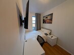 This modern 1-bedroom, 1-bathroom apartment comfortably accommodates up to 2 guests. Situated in the Upper East Side, it offers easy access to Central Park and New York's top attractions and restaurants. The Q line subway station is just a few steps away at the corner of 2nd Ave and East 94th Street. Featuring a bedroom and an office/living room, this apartment includes a fully equipped kitchen and a marble-tiled bathroom. The master bedroom has a full-size bed, and there is a sofa bed in the office/living room. An extra single bed can be provided upon request. The kitchen is equipped with a refrigerator, electric plate, microwave, toaster, dishes, and utensils. Wi-Fi is available for your convenience, and linens and towels are provided. There is a common area between the bedroom and office, which includes the kitchen and dining area. All pets must be approved in advance, with a pet fee ranging from $250 to $350. Utilities are excluded and cost $330 per month, covering electric, gas, Wi-Fi, and streaming TV box with Netflix. From June 1st to October 1st, utilities are $350 per month. Additional cleaning can be arranged for an extra fee. Located in the Upper East Side, this apartment offers short distances to Central Park and the best attractions and restaurants New York has to offer. The Q line subway station is conveniently located just a few steps from the building, at the corner of 2nd Ave and East 94th Street. Utilities such as electricity, Wi-Fi, and streaming Roku TV are not included in the monthly rent and will cost $330 per month, increasing to $350 per month from June 1st to October 1st. A late check-in fee of $50 applies for arrivals after 10 PM, and $100 for arrivals after midnight. Access to the mailbox is not guaranteed, but package delivery is available. The furniture and decoration may vary from the online photos as updates and refreshes occur periodically. Check-out time is by 11 AM, and guests are requested to empty the refrigerator and dispose of all trash before departure. For some cases between June 1st and September 1st, a minimum stay of 90 days may be required. Coordinate your arrival time at least 72 hours prior to check-in, and for last-minute bookings, provide advance notice of a few hours. If you require early check-in, late check-out, or have any special requests (e.g. additional guests, luggage storage), please submit them in writing in advance. All requests are subject to availability and may incur an additional fee if approved. As part of our standard guest verification process, the partner will request that you complete a short application and authorize a background check a few weeks prior to arrival. Instructions will be provided closer to your check-in date. Please note: A $75 application fee may apply. [SI]