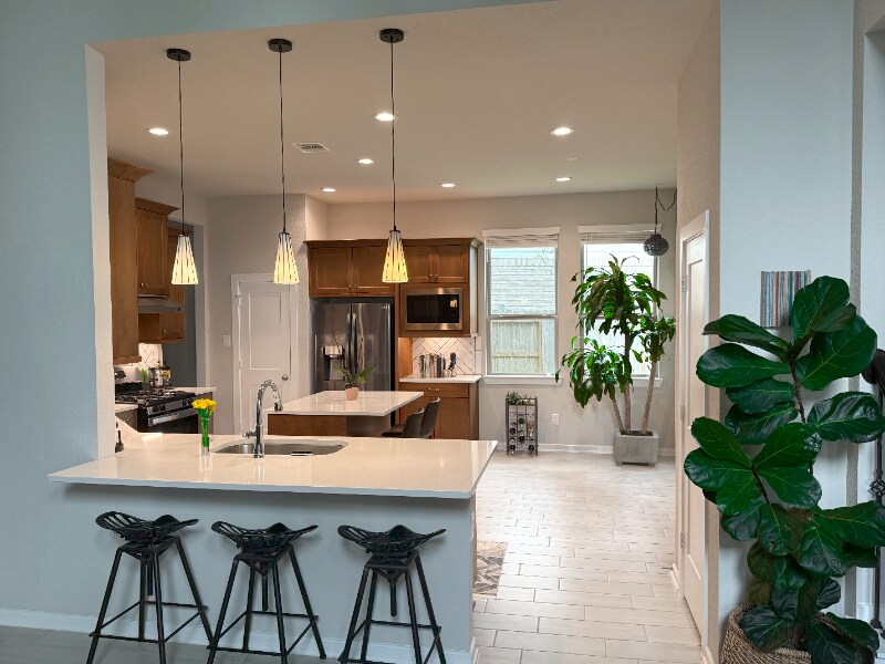 Property Id: 1796279 * Negotiable Move-in Date * Newer 4BR Home| Private Backyard | Washer/Dryer Included | Resort-Style Amenities Built in 2022 and exceptionally well maintained, this energy-efficient 2,600 sq. ft. home offers 4 generously sized bedrooms, 2.5 bathrooms, and a modern open-concept layout in The Woodlands Hills, just 45 minutes from Houston. Soaring ceilings and oversized windows fill the living spaces with natural light, while contemporary finishes and low-maintenance design make everyday living effortless. The chef's kitchen features quartz countertops, stainless steel appliances, a gas range, subway tile backsplash, and two pantries for exceptional storage. A sunny breakfast nook overlooks the backyard, and a flexible room that can work as a home office or formal dining space. The main-floor primary suite is a true retreat, complete with a soaking tub, walk-in shower, dual vanities, and an oversized walk-in closet. Upstairs, a spacious game room overlooks the family room, three additional bedrooms with walk-in closets, and a split full bath with double sinks. A dedicated laundry room comes with washer and dryer included. Step outside to your private backyard oasis — lush landscaping, mature trees, and a covered patio provide the perfect space for outdoor dining, relaxing, or entertaining. The two-car garage features epoxy flooring and built-in storage. The home's Certified Green Standards construction ensures energy efficiency year-round. Community amenities include 10+ miles of nature trails, 20 parks, pools, tennis and pickleball courts, playgrounds, and a state-of-the-art fitness and activity center. This is a quiet, walkable neighborhood surrounded by green space. Currently occupied — showings by appointment only. 12-month lease required. First month's rent plus security deposit due at signing. Small dogs welcome with approval and an additional fees. Tenant responsible for utilities and yard care. Applications via TurboTenant — please message for link.