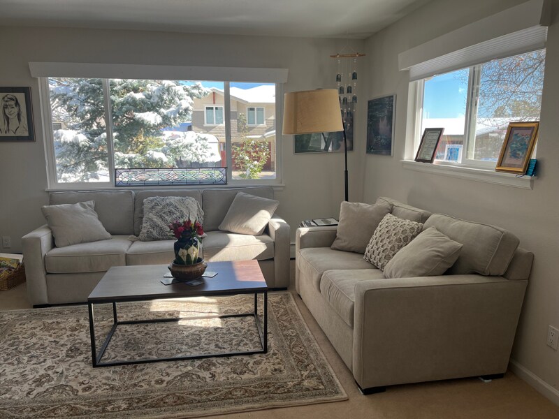 Property Id: 1818882 Light-filled, Furnished, flatirons view house in amazing locale at the foot of Ncar. 2 blocks to foothills, mountain trails, with hot tub- remodelled w 2 bedrooms, 2 baths, 1600 sq feet w full kitchen w new appliances, quartz and granite. Up bath w full marble floors and shower and quartz sink, heated floor. All utilities free! High speed internet and smart TV. 1 dog allowed. 2000 includes all utililities- add 800 security deposit and 200.00 cleaning, pet fee. Feb 15,2026-4/30/2026.