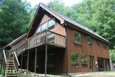 Private Chateau-Style home set back in the woods. This wonderful 4 bed, 2 bath cape features hardwood floors throughout almost every inch. Entering the property through the main door off of the wrap around deck with Trex decking, you enter the open and impressive living space. Living room to the left, dining area and kitchen to the right, the two-story windows and vaulted ceiling let in loads of light to highlight the impressive woodwork. Fully applianced kitchen, loads of built-ins in the living room, a fully renovated full bath, two spacious bedrooms and washer/dryer round out the reminder of the main level. Up the impressive staircase you'll find the master suite with full bath and walk-in closet. Downstairs you'll find the very large family room with hardwood floors and the passageway to the 4th bedroom with loft area. The utility room and 2 car garage complete the lower level. Minutes to UConn, ECSU, Windham Hospital and I-384 for easy commuting. Lawncare and snow removal included, Move-in Ready.