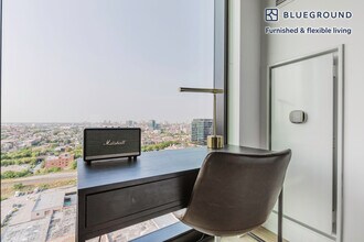 Show up and start living from day one in Chicago with this stylish studio Blueground apartment. You’ll love coming home to this thoughtfully furnished, beautifully designed, and fully equipped Fulton Market District home with stunning high floor views over the city. (ID #CHI1097) The advertised rate of $3,040/month is the lowest available price, based on a 12 month(s) stay with a move-in date of March 27, 2030. Rates vary depending on the duration of stay, season, and other parameters. For exact pricing and additional pricing components, please visit our website and enter your desired move-in and move-out dates. The rate is applicable when billed upfront; it can be higher if billed in multiple payments. Brokers are welcome to reach out. Were you looking for an unfurnished lease? Try Blueground instead and upgrade from unfurnished to furnished living: - Furnished at rates comparable to unfurnished - No setup or furniture costs - save thousands - Move-in ready - save time, just bring your suitcase Designed with you in mind Thoughtfully designed with bespoke finishes, modern furnishings, and a fully equipped kitchen, you’ll enjoy that “I’m home” feeling with this Blueground apartment. Whether you’re lounging in your roomy living room streaming the latest and greatest entertainment on the smart TV or premium wireless speaker, or getting some well-earned rest on the superior quality mattress with luxury linens, you’ll fall in love with everything this Fulton Market District apartment has to offer. This apartment also offers in-apartment laundry. Sleeping arrangements Queen Bed, 63in/160cm Amenities Building amenities unique to this studio apartment include an on-site: - BBQ Area - Dryer - Elevator - Swimming pool - Washing machine - Lounge Arrival and ongoing support The entire apartment is yours to enjoy! Throughout your stay, you’ll have access to our Client Experience team through the Blueground App. You can schedule additional cleanings, submit maintenance requests, and view our neighborhood recommendations with just a few taps. We’ll share all details upon confirmation of your stay. Other things to note Building amenities may have an extra cost. This Blueground apartment has flexible lease options, allowing you to book it for one month, a year, or more. We take great pride in ensuring every photo displayed is shot in our own units with our actual furnishings. That said, we regularly refresh our decor and furniture arrangement, which may differ from what’s pictured. Also note - This apartment is located near a railway, so expect to hear moderate noise when trains pass - This is a guarded building equipped with a doorman/concierge at all times [SI]