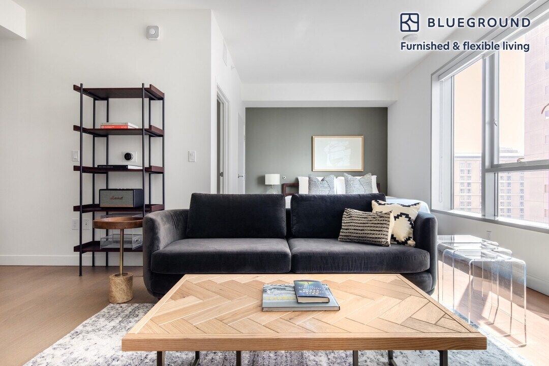 Discover the best of Los Angeles, with this one bedroom apartment in Bunker Hill with views over the city. It’ll be easy to simply show up and start living in this furnished apartment with its fully equipped kitchen, living room, and our dedicated, on-the-ground support. (ID #LAX279) The advertised rate of $3,580/month is the lowest available price, based on a 11 month(s) and 29 day(s) stay with a move-in date of June 23, 2026. Rates vary depending on the duration of stay, season, and other parameters. For exact pricing and additional pricing components, please visit our website and enter your desired move-in and move-out dates. The rate is applicable when billed upfront; it can be higher if billed in multiple payments. Brokers are welcome to reach out. Were you looking for an unfurnished lease? Try Blueground instead and upgrade from unfurnished to furnished living: - Furnished at rates comparable to unfurnished - No setup or furniture costs - save thousands - Move-in ready - save time, just bring your suitcase Designed with you in mind As with any Blueground apartment, you’ll find a thoughtfully designed space complete with beautiful furniture and a fully equipped kitchen in this one bedroom property. And, thanks to our superior quality mattresses, fully stocked linens, and towels, you can relax knowing you’ll always feel comfortably at home. When you’re ready for some fun, you can take in the Los Angeles vibes or bring the entertainment to you with the premium wireless speaker or smart TV. This apartment also offers in-apartment laundry. Sleeping arrangements King Bed, 70.8in/180cm Amenities Building amenities unique to this one bedroom apartment include an on-site: - BBQ Area - Doorman - Dryer - Elevator - Game room - Swimming pool - Washing machine - Lounge - Library - Parking - Pets allowed Arrival and ongoing support The entire apartment is yours to enjoy! Throughout your stay, you’ll have access to our Client Experience team through the Blueground App. You can schedule additional cleanings, submit maintenance requests, and view our neighborhood recommendations with just a few taps. We’ll share all details upon confirmation of your stay. Other things to note Building amenities may have an extra cost. This Blueground apartment has flexible lease options, allowing you to book it for one month, a year, or more. Pets are welcome, though weight limits and breed restrictions apply and may incur fees. Parking is offered based on availability and is subject to a fee. We take great pride in ensuring every photo displayed is shot in our own units with our actual furnishings. That said, we regularly refresh our decor and furniture arrangement, which may differ from what’s pictured. [SI]