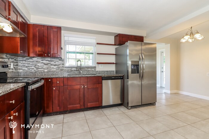 MOVE-IN READY Monthly Recurring Fees: $25.00 - Smart Home $10.95 - Utility Management Tucked into a well-established Clearwater neighborhood, this 3-bedroom, 2-bath home at 2250 Norman Dr offers a thoughtful single-story layout just minutes from everyday conveniences and Florida’s Gulf Coast. Clearwater Beach is roughly 15 minutes away, with quick access to US-19 connecting you to St. Petersburg in about 25 minutes and Tampa in under 40, making this location as practical as it is appealing. Inside, the home opens to spacious living areas finished with durable tile flooring that flows seamlessly into the kitchen and adjacent dining space. The kitchen features granite countertops, a mosaic tile backsplash, and stainless steel appliances. Ample cabinetry and open sightlines create a comfortable setting for daily routines, while large windows invite natural light throughout the main living areas. The layout continues with three well-proportioned bedrooms, each finished with LVP flooring for easy upkeep. Two full bathrooms showcase tiled tub and shower surrounds, clean-lined vanities, and practical storage. Ceiling fans in multiple rooms add to the home’s everyday comfort, and the single-level design keeps everything easily accessible. Out back, a covered patio extends the living space outdoors, overlooking a generously sized yard bordered by mature greenery, an inviting spot for relaxed afternoons or evening downtime. With its efficient layout, durable finishes, and proximity to beaches, shopping, and major roadways, this Clearwater home delivers a balanced blend of location and livability. Apply now! *Maymont Homes provides residents with convenient solutions, including simplified utility billing and flexible rent payment options. Contact us for more details. This information is deemed reliable, but not guaranteed. All measurements are approximate. Actual product and home specifications may vary in dimension or detail. Images are for representational purposes only. Some programs and services may not be available in all market areas. Prices and availability are subject to change without notice. Advertised rent prices do not include the required application fee, the partially refundable reservation fee (due upon application approval), or the mandatory monthly utility management fee (in select market areas.) Residents must maintain renters insurance as specified in their lease. If third-party renters insurance is not provided, residents will be automatically enrolled in our Master Insurance Policy for a fee. Select homes may be located in communities that require a monthly fee for community-specific amenities or services. For complete details, please contact a company leasing representative. Equal Housing Opportunity. This property allows self guided viewing without an appointment. Contact for details.