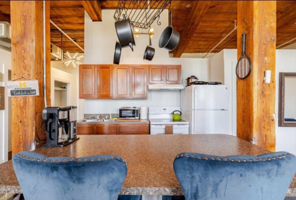 Welcome to the Detroit Belle Isle Loft! Perfect for couples and business travelers, feel at home in this stylish space boasting captivating views of Mt. Elliott Park and the Detroit Riverwalk. The Belle Isle Loft is a cozy retreat in Detroit. The open floor plan seamlessly combines the living room, dining area, and bedroom, making it a comfortable space to relax and unwind. With arcade games like Pacman, a dart board, and a pool table, there’s plenty of fun to be had during your stay. The loft is well-equipped with a full kitchen with modern appliances, a comfortable living area with a TV, and a dining area perfect for enjoying meals. Central heating, air conditioning, and laundry facilities are included. Parking options are available. The Belle Isle Loft provides stunning views of Mt. Elliott Park and the Detroit Riverwalk. The apartment is a perfect base for enjoying seasonal events, offering a cozy retreat after a day of exploring the winter wonderland. No smoking is allowed. If outdoor cameras, doorbell devices, or internet are tampered with, this qualifies for immediate cancellation of your reservation. No children are allowed. Gatherings and parties over the maximum occupancy are prohibited. All visiting guests must be reported and approved by the host. [SI]