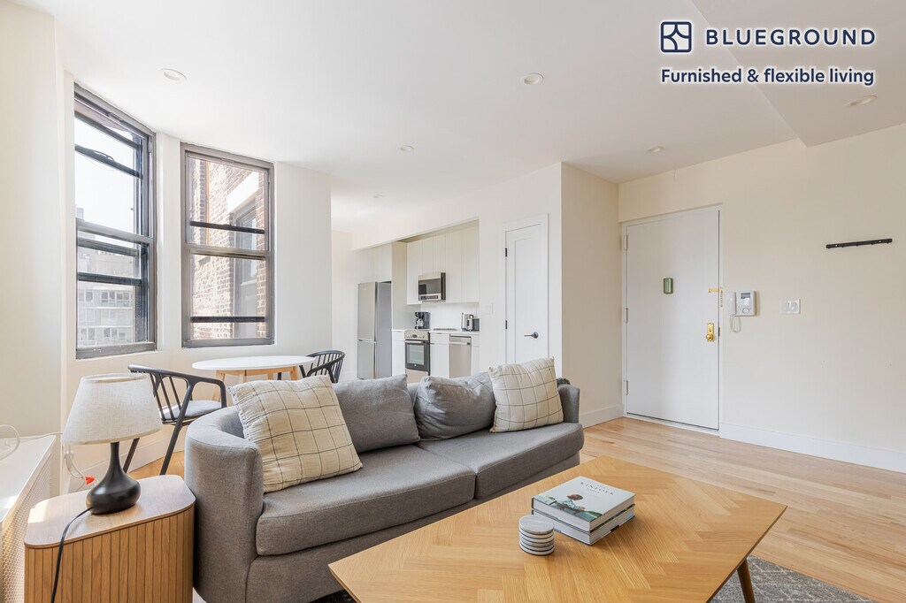 Feel at home wherever you choose to live with Blueground. You’ll love this cozy Bloomingdale furnished one bedroom apartment with its modern decor, fully equipped kitchen, and roomy living room. Ideally located, you’re close to all the best that New York has to offer! (ID #NYC1862) The advertised rate of $4,300/month is the lowest available price, based on a 12 month(s) stay with a move-in date of March 1, 2026. Rates vary depending on the duration of stay, season, and other parameters. For exact pricing and additional pricing components, please visit our website and enter your desired move-in and move-out dates. The rate is applicable when billed upfront; it can be higher if billed in multiple payments. Brokers are welcome to reach out. Were you looking for an unfurnished lease? Try Blueground instead and upgrade from unfurnished to furnished living: - Furnished at rates comparable to unfurnished - No setup or furniture costs - save thousands - Move-in ready - save time, just bring your suitcase Designed with you in mind Thoughtfully designed with bespoke finishes, modern furnishings, and a fully equipped kitchen, you’ll enjoy that “I’m home” feeling with this Blueground apartment. Whether you’re lounging in your sophisticated living room streaming the latest and greatest entertainment on the smart TV or premium wireless speaker, or getting some well-earned rest on the superior quality mattress with luxury linens, you’ll fall in love with everything this Bloomingdale apartment has to offer. Sleeping arrangements Queen Bed, 63in/160cm Amenities Building amenities unique to this one bedroom apartment include an on-site: - Doorman - Dryer in building - Elevator - Washing machine in building - Pets allowed Arrival and ongoing support The entire apartment is yours to enjoy! Throughout your stay, you’ll have access to our Client Experience team through the Blueground App. You can schedule additional cleanings, submit maintenance requests, and view our neighborhood recommendations with just a few taps. We’ll share all details upon confirmation of your stay. Other things to note This Blueground apartment has flexible lease options, allowing you to book it for one month, a year, or more. Pets are welcome, though weight limits and breed restrictions apply and may incur fees. Brokes CYOF. We take great pride in ensuring every photo displayed is shot in our own units with our actual furnishings. That said, we regularly refresh our decor and furniture arrangement, which may differ from what’s pictured.